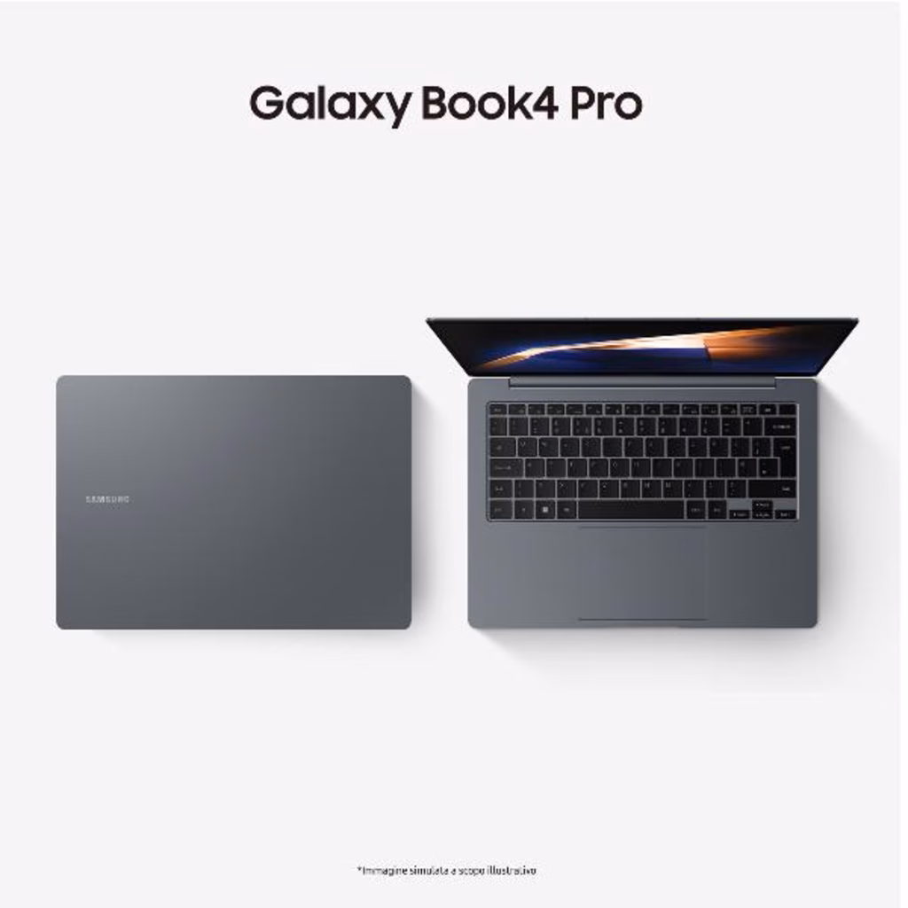 Scopri il leggero e potente Galaxy Book4 Pro 14". Design ultra sottile per entrare nello zaino e con un corpo compatto in alluminio che pesa poco meno di 1,3 kg, questo laptop è progettato per accompagnarti ovunque.