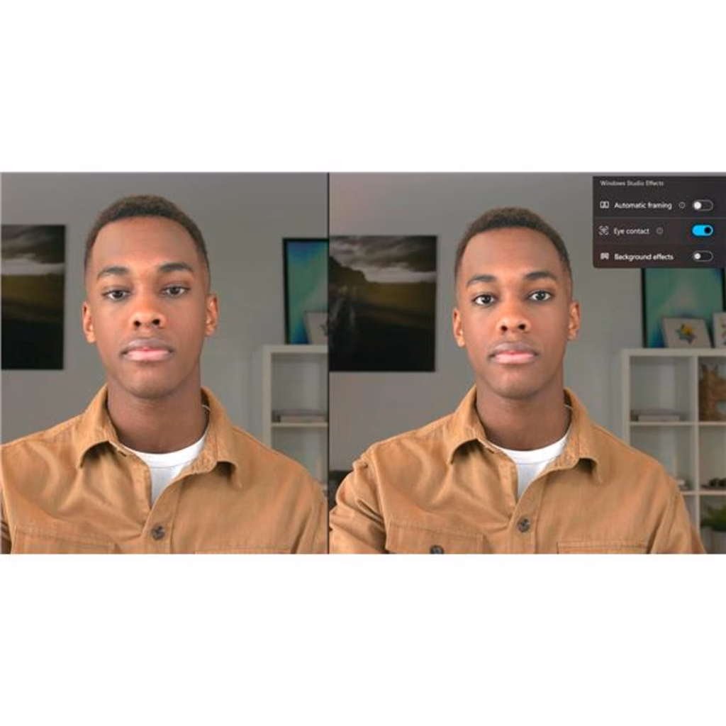 Gli effetti di Windows Studio con funzioni basate sull'intelligenza artificiale ti mantengono costantemente a fuoco con la sfocatura dello sfondo e l'inquadratura automatica e regolano lo sguardo per aiutarti a rimanere connesso con la funzione Eye Contact.Sostenibilità innovativa e creativaProgettazione innovativa