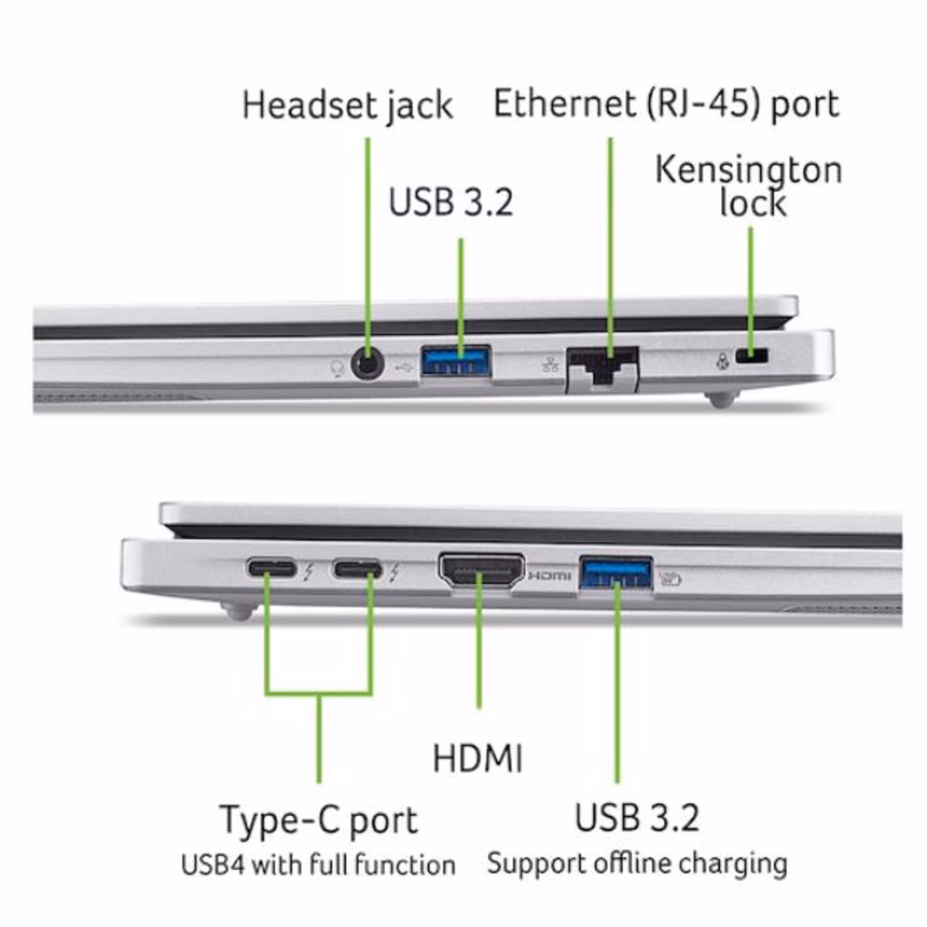Sia che siate in viaggio o che vi colleghiate alla vostra postazione di lavoro, il TravelMate P2 dispone di tutte le porte e della connettività WiFi 6E veloce di cui avete bisogno in qualsiasi situazione per rimanere connessi al mondo.