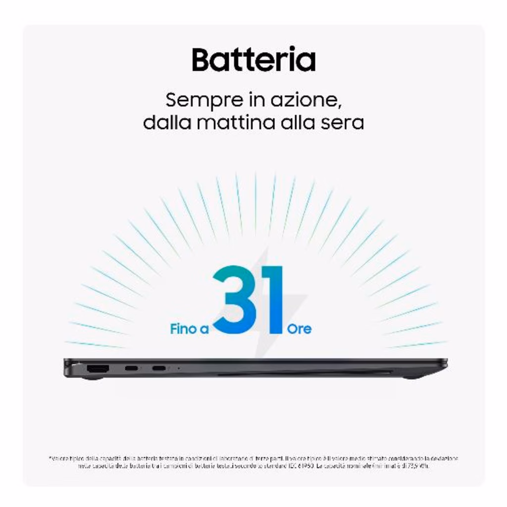 La batteria dura fino a 31 ore, mentre Wi-Fi 7 assicura connessioni ultraveloci.