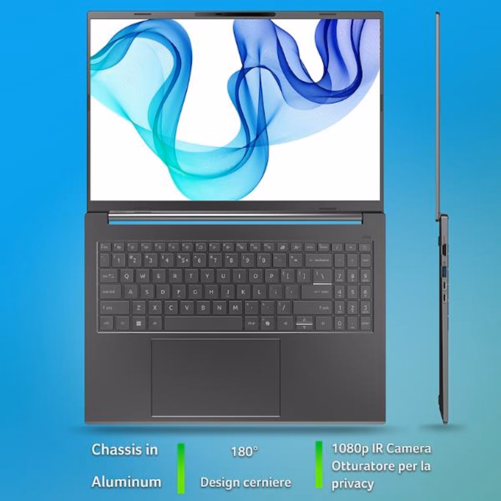 Aspire 16 AI è caratterizzato da uno chassis in alluminio resistente, sottile e leggero, dal design ultramoderno. La cerniera a 180° offre una comodità versatile, per lavorare, studiare o realizzare progetti creativi ovunque.