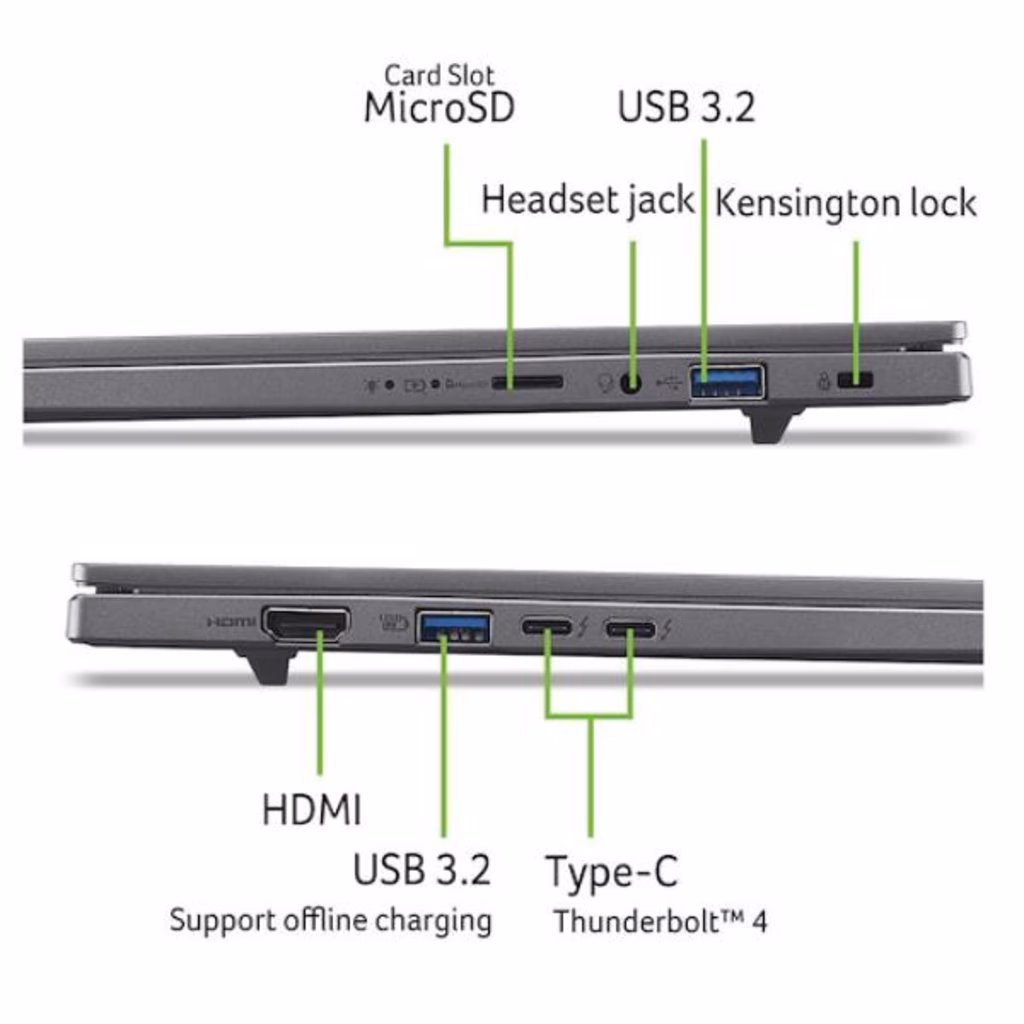 Costruito con funzioni intuitive per la versatilità di tutti i giorni, Aspire 16 AI offre praticità, tra cui la doppia porta Thunderbolt 4, l'otturatore per la privacy della fotocamera e il Bluetooth 5.4.
