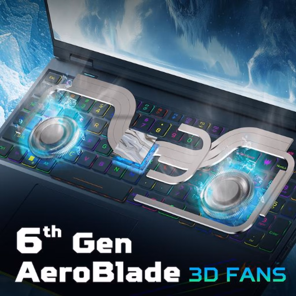 Progettata per il massimo raffreddamento, la tecnologia AeroBlade 3D Fan di sesta generazione prevede pale in metallo ultrasottili e reattive che si sollevano e si adattano alle alte velocità, aumentando l'efficienza del flusso d'aria del 20%!