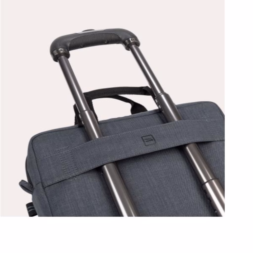 Borsa compatta e leggera per laptop 12" e MacBook Air/Pro 13", in materiale ottenuto dalla plastica riciclata. Dotata di un comodo vano centrale, la borsa Stop ha una tasca interna per il laptop e una tasca esterna per gli accessori, sulla parte frontale. Dotata di fascia per l'aggancio al trolley e di tracolla rimovibile.