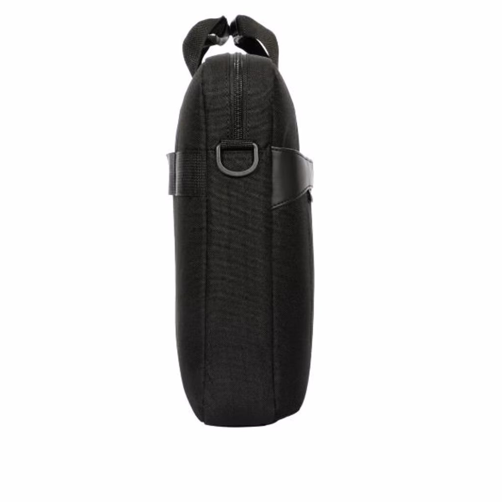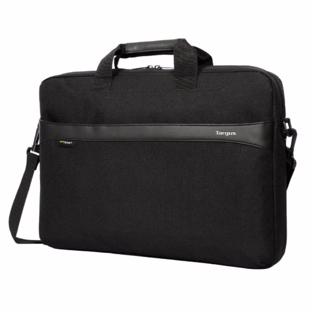 Stay organised and stay ahead with the 15-16" GeoLite EcoSmart® Slim Brief. Sporting a modern design, it s ideal for professionals looking to balance style, storage, and laptop protection. Slimmer than a briefcase and more functional than a sleeve, the GeoLite EcoSmart® Slim Brief offers a divided laptop compartment allowing for a separate space for documents and files. The front zip compartment provides easy access to your phone, charger, and other accessories. Its removable shoulder strap, soft-grip handles, and luggage trolley strap offer comfortable carrying options. And, its water-resistant exterior and earth-conscious interior, deliver on style, functionality, and sustainability.