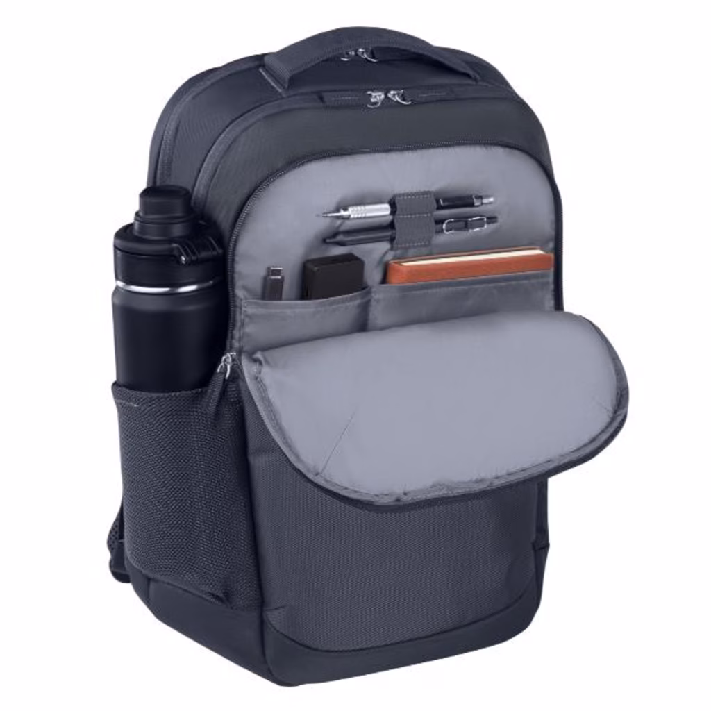 Proteggi il tuo dispositivo e tieni tutti i tuoi accessori ben organizzati nei tuoi spostamenti quotidiani con questo resistente zaino per notebook da 16 pollici. Realizzato in modo responsabile con materiali riciclati, questo spazioso zaino è pronto ad accompagnarti ovunque.
