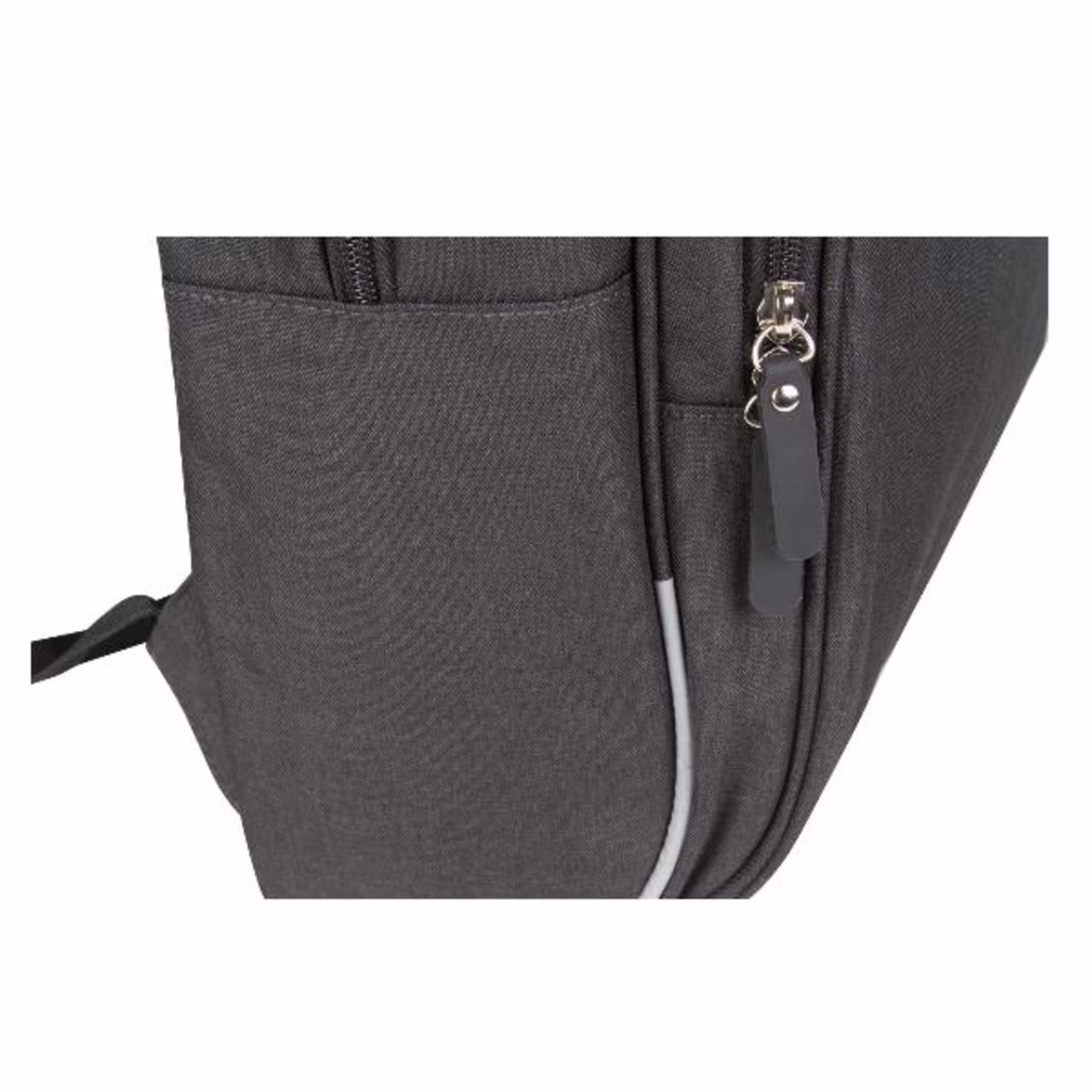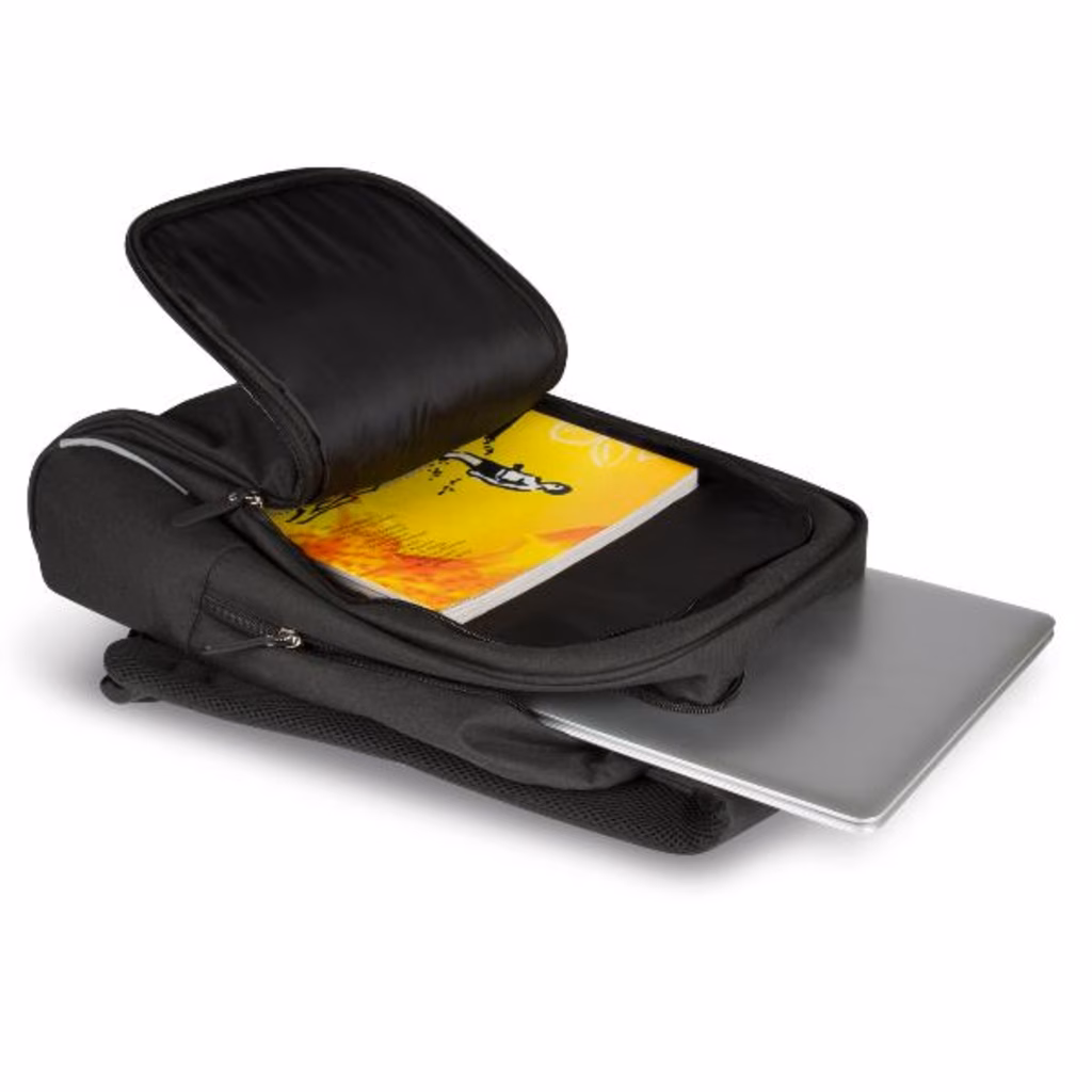 Zaino business a 4 scomparti per Notebook fino a 16". Lo zaino è dotato di 3 aperture con zip per 4 scomparti interni totali. L'ampio vano principale e lo schienale sono imbottiti per offrire una ottimale protezione del notebook. Nelle tasche separate è possibile trovare alloggio per vari accessori e documenti. Gli spallacci regolabili imbottiti garantiscono il massimo comfort di utilizzo. Lo zaino è realizzato in resistente poliestere 300D per la massima durabilità e presenta inserti catarifrangenti per migliorare la visibilità al buio. Colore Nero.