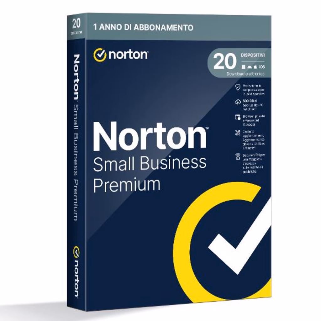 Con Norton Small Business Premium, avrai una protezione completa grazie alla sicurezza informatica per i dispositivi della tua azienda e per le password, i dati dei clienti e le informazioni finanziarie memorizzati su di essi.