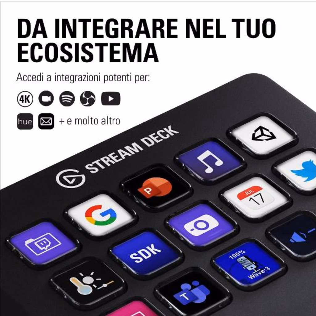 Stream Deck: 15 tasti LCD personalizzabili per controllare app e piattaforme.