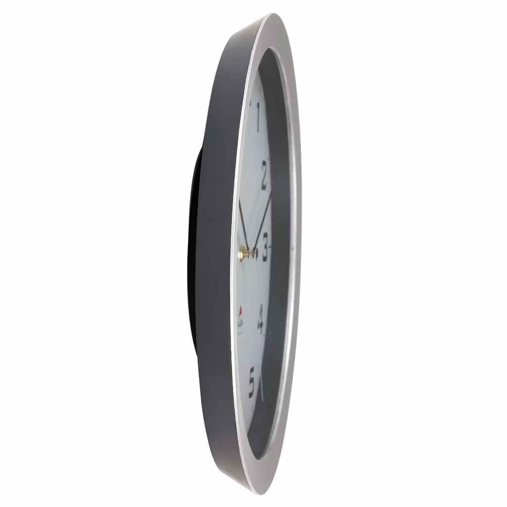 Orologio da parete, diametro 38 cm, con cassa in ABS e lente di protezione in vetro. Movimento al quarzo silenzioso ad alta precisione. Facile leggere l'ora grazie alle grandi lancette su quadrante bianco. Funziona con batteria LR6/AA (non inclusa).