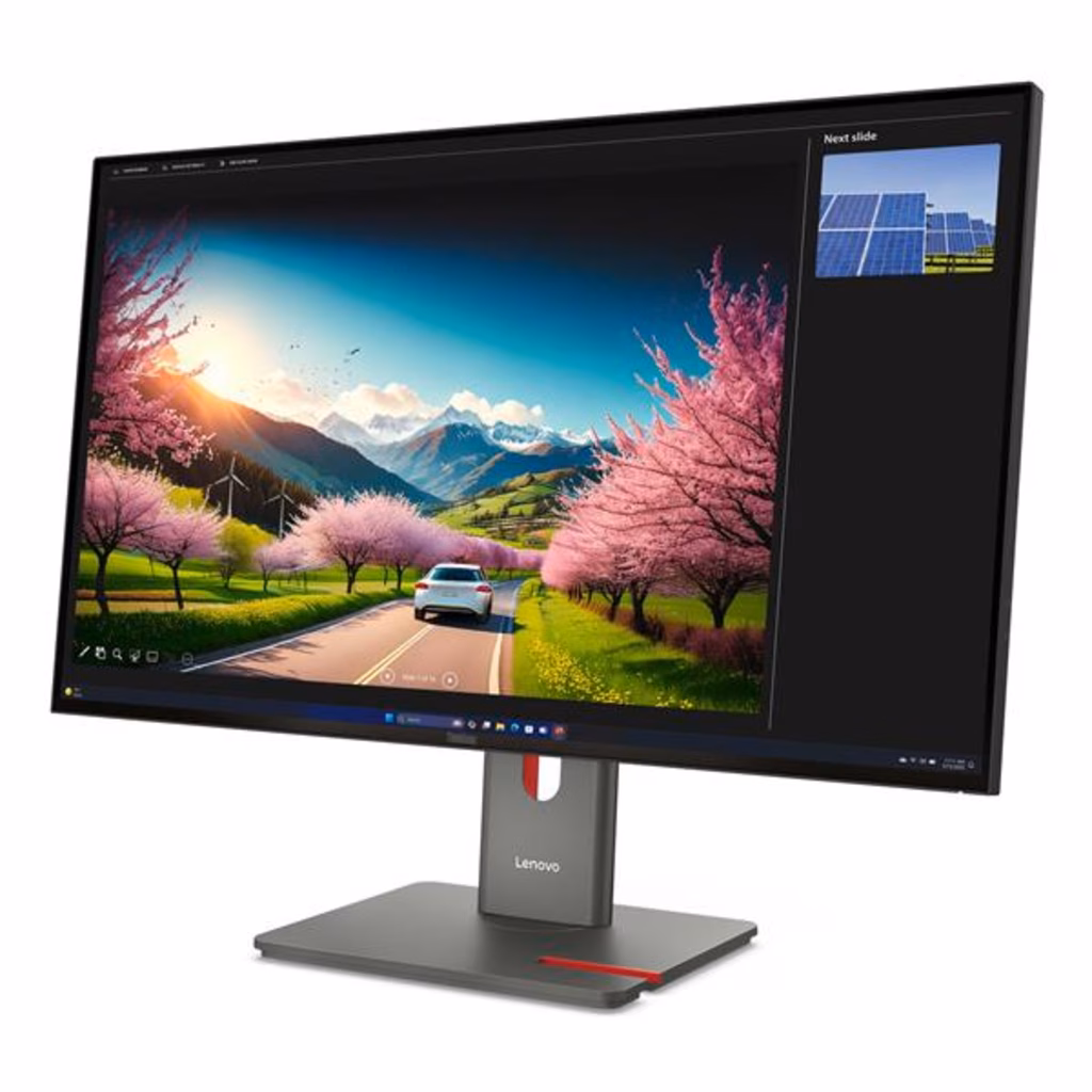 Lenovo ThinkVision P32UD-40 MonitorElevates Your Working Experience ThinkVision P32UD-40 Commit to sustainability without compromising performance. The ThinkVision P32UD-40 monitor is designed with the environment in mind, featuring a reduced environmental impact throughout the product lifecycle. Easily Accessible Connectivity for Productivity One-cable Thunderbolt solution to furnish power, data, and network capabilities at the same time with up to 140W power delivery. Built-in RJ45 with 2.5Gbps Ethernet ports delivers a fast, stable, and secure internet connection. KVM/eKVM function allows users to switch easily between two connected PCs. PIP and PBP function allows users to browse images from different signals for more efficiency. Lenovo Display Fleet Manager Smooth Firmware Upgrades and Easy Remote Asset Lenovo Display Fleet Manager software offers IT managers better asset management and control of monitor assets, with convenient firmware upgrades and quick access to settings. Lenovo Display Fleet Manager provides easy customization and adjustments to display settings. User-Friendly Ergonomic Design Enjoy an upgraded user experience that makes comfort and ease a priority with the ThinkVision P32UD-40 Monitor. Save space and reduce clutter with cleaner cable management. A full-function ergonomic stand with wider adjustable ranges, including lift and tilt, ensure you position the monitor perfectly for maximum comfort. The P32UD-40 also provides a phone holder for enhanced flexibility.