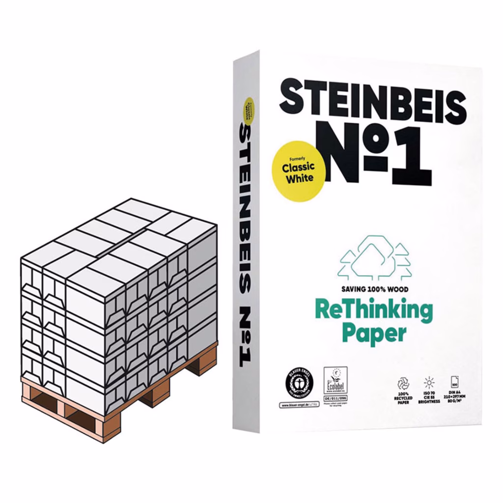 Pallet carta riciclata per fotocopie A4 g80 STEINBEIS N.1 risma da 500 fogli (Penisola)