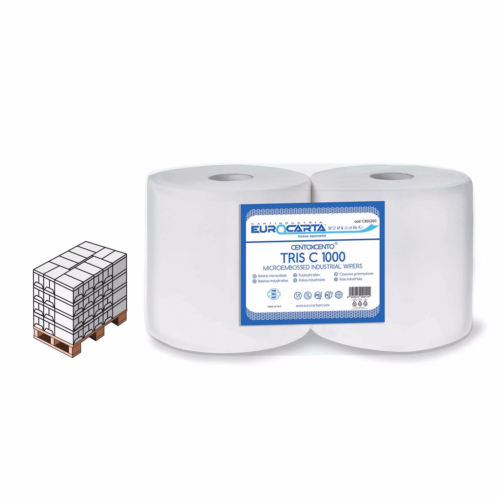 Pallet rotolo industriale EUROCARTA TRIS C 1000 3 veli 500 strappi metri 185