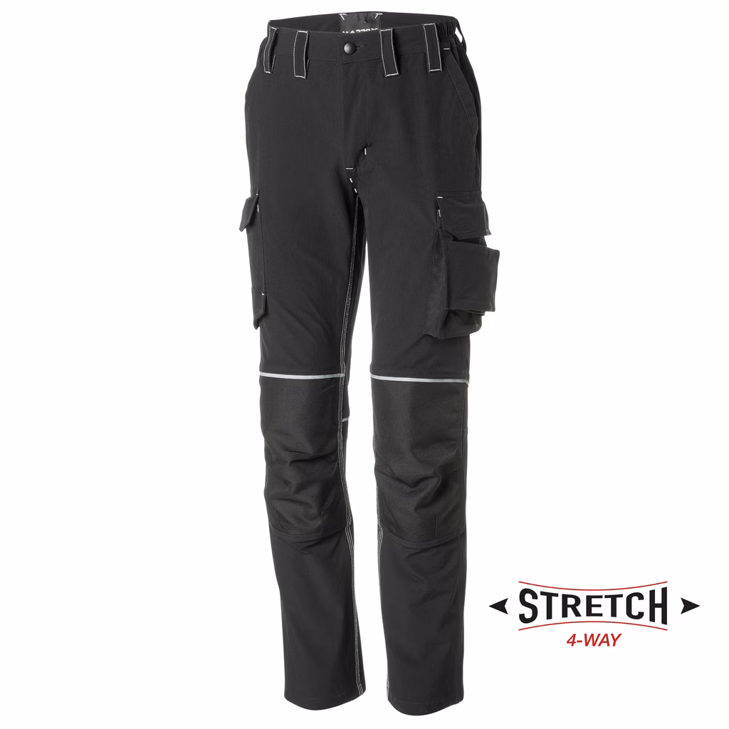Pantalone Maddox in tessuto stretch 4-way con inserti in poliestere Oxford, elastici laterali in vita, bottone antigraffio e cerniera coperta, due tasche davanti e due tasche posteriori di cui una applicata e una a filetto, due tasconi con pattina alle gambe, con gancio portabadge (non incluso), su gamba sinistra tasca obliqua per cellulare con pattina per una facile personalizzazione, cuciture a contrasto, profilo rinfrangente alle ginocchia. Composizione: 92% nylon  8% spandex / Inserti 100% poliestere