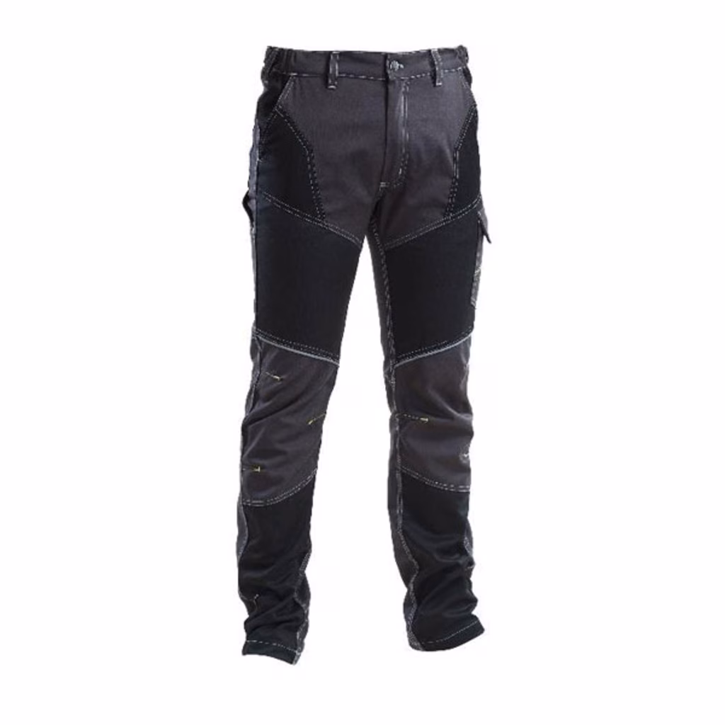 Pantalone stretch slim-fit - elastico ai fianchi - 2 tasche laterali a filetto - portametro su gamba destra e tascone chiuso con pattina e velcro a sinistra - 2 tasche posteriori a toppa - triple cuciture sul cavallo e lungo gamba - ginocchia preformate con inserti rifrangenti - cuciture a contrasto lime fluo sulle tasche.