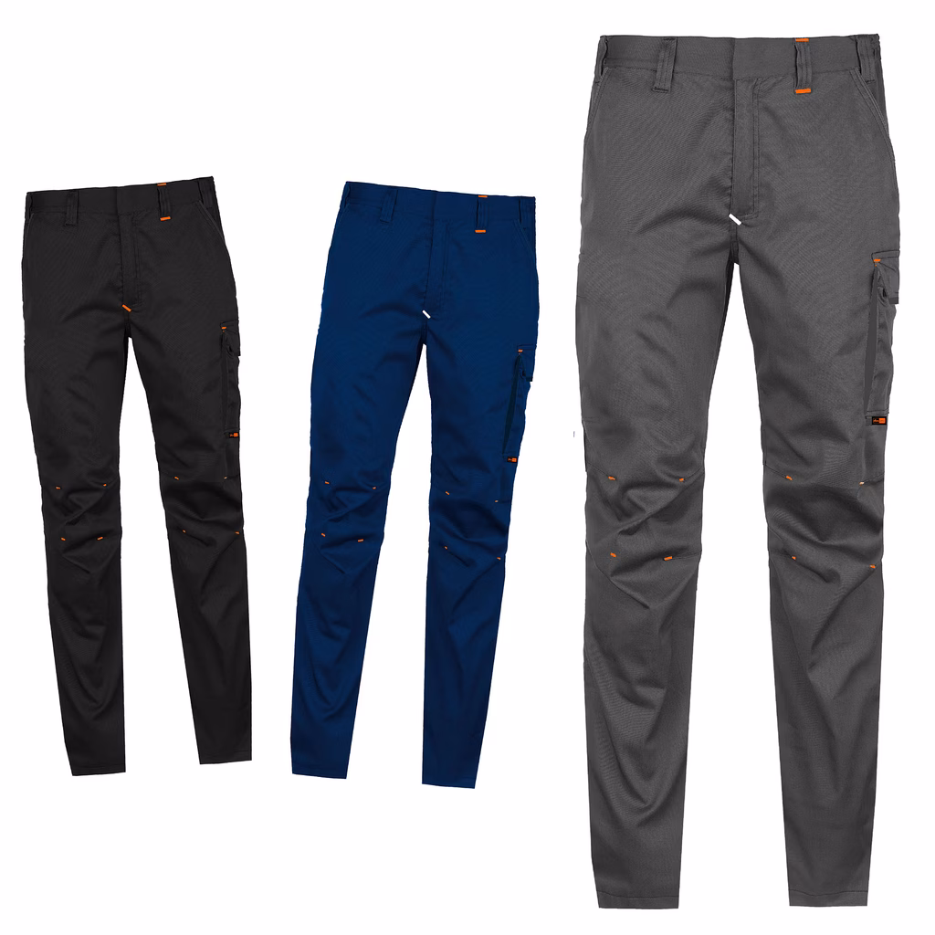 Pantalone realizzato in tessuto antistrappo RIPSTOP elasticizzato - 4 tasche: due ai fianchi, una posteriore e una laterale porta cellulare - tasca porta metro