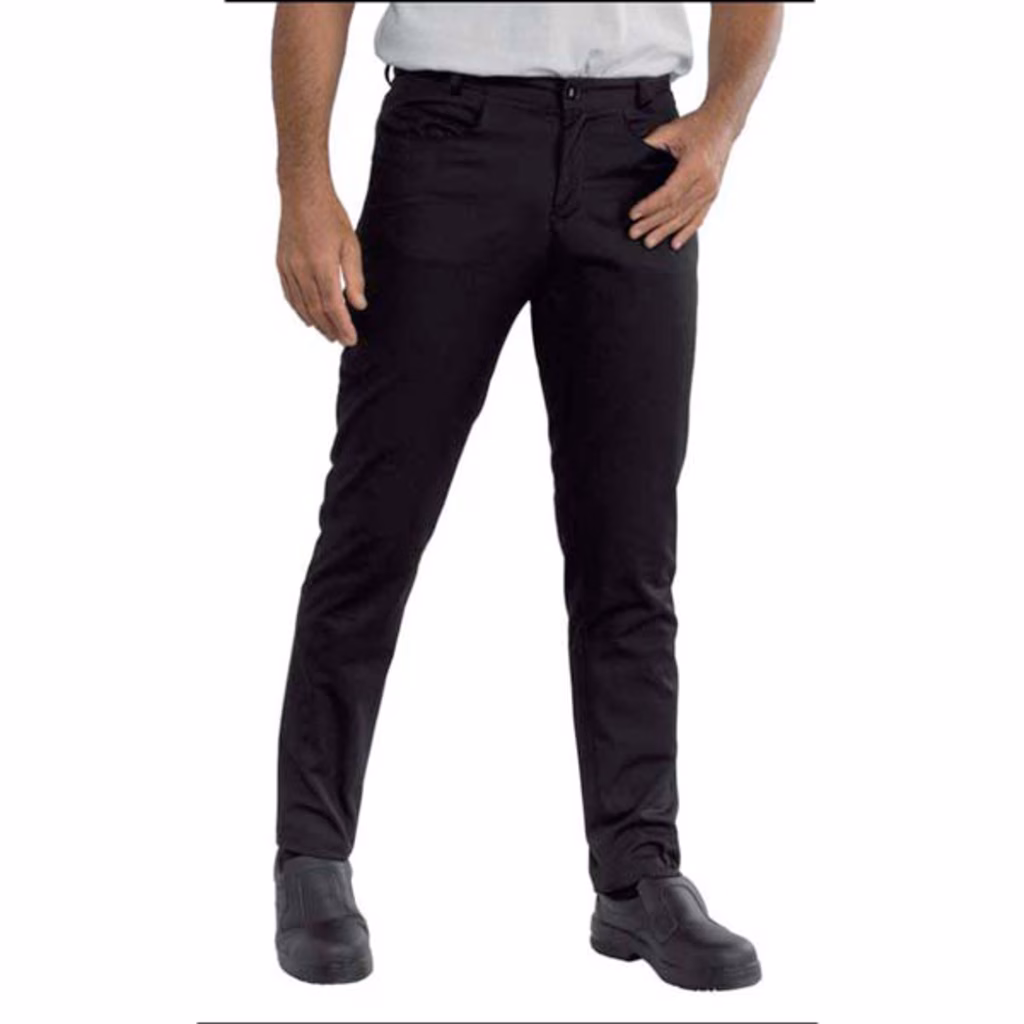 Pantalone Skinny Slim Fit Nero Uomo Cameriere Hotel senza pinces - 2 tasche anteriori - 1 tasca posteriore - chiusura con bottoni e cerniera