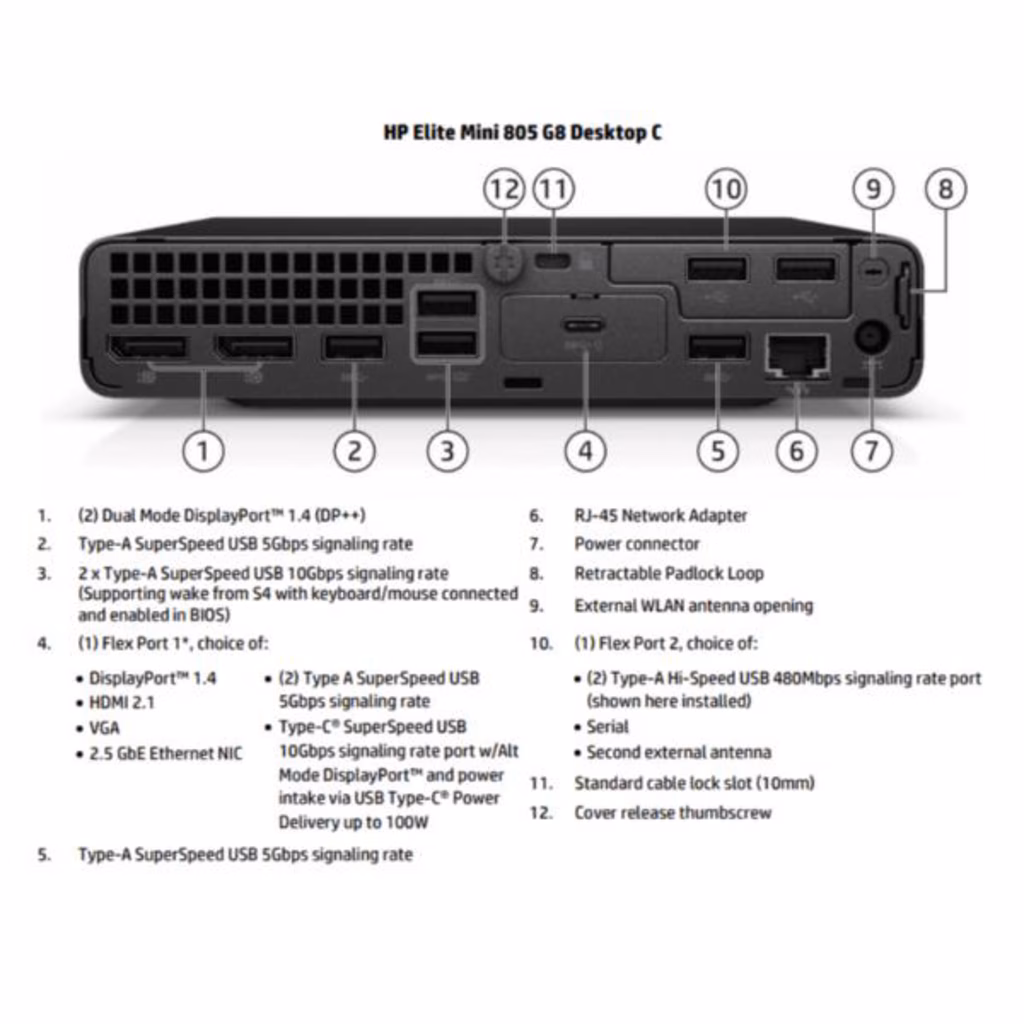 HP Elite Mini 805, altamente sicuro e facilmente gestibile, è dotato di un potente processore AMD Ryzen   con opzioni di configurazione a costi contenuti. Questo PC compatto e ad alte prestazioni si adatta perfettamente a ogni ambiente di lavoro domestico o di ufficio, con tecnologia acustica HP Run Quiet Design che riduce il livello di rumore per la massima concentrazione.Opzioni multiple di implementazione