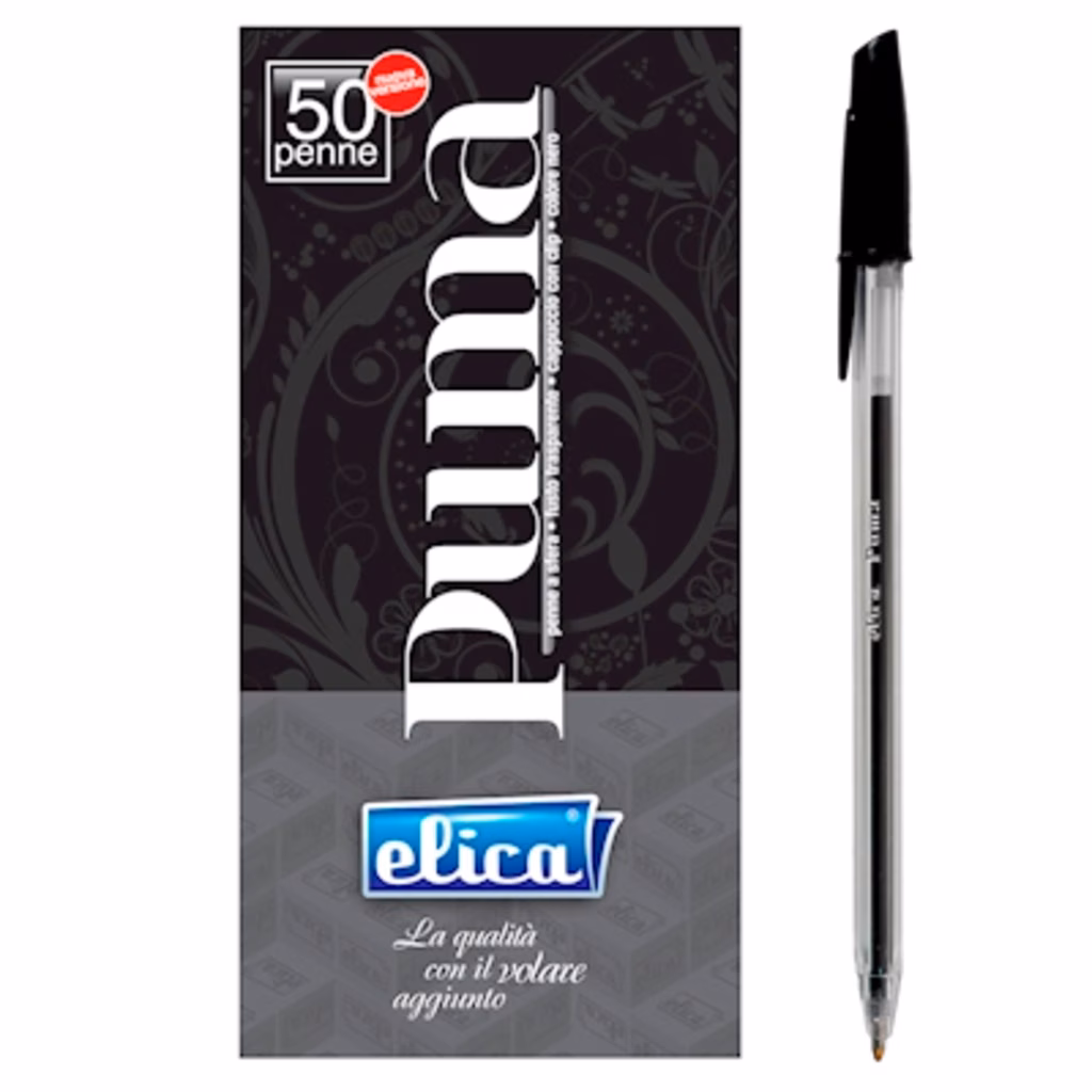 Penna a sfera colore nero ELICA PUMA punta media mm 1