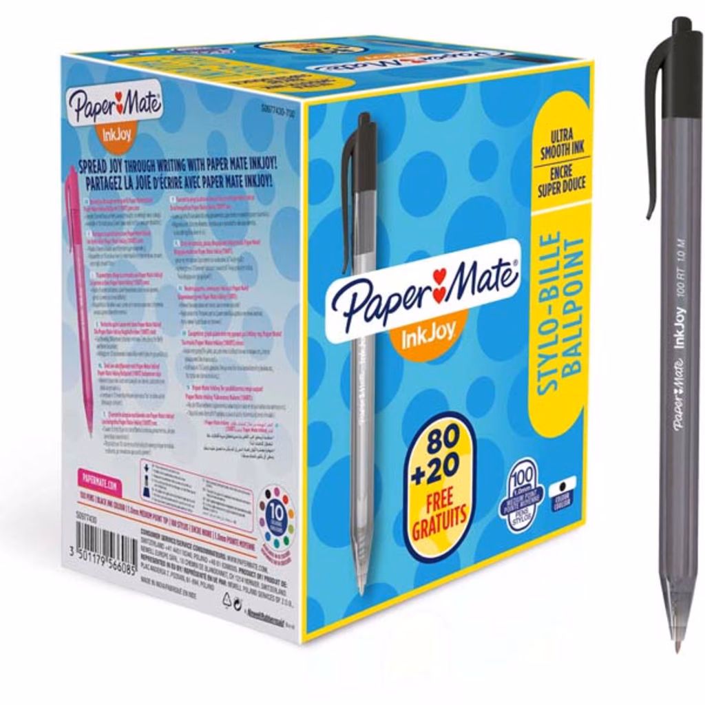 Penna ink gel a scatto colore nero PAPERMATE INKJOY 100 RT punta media mm 1