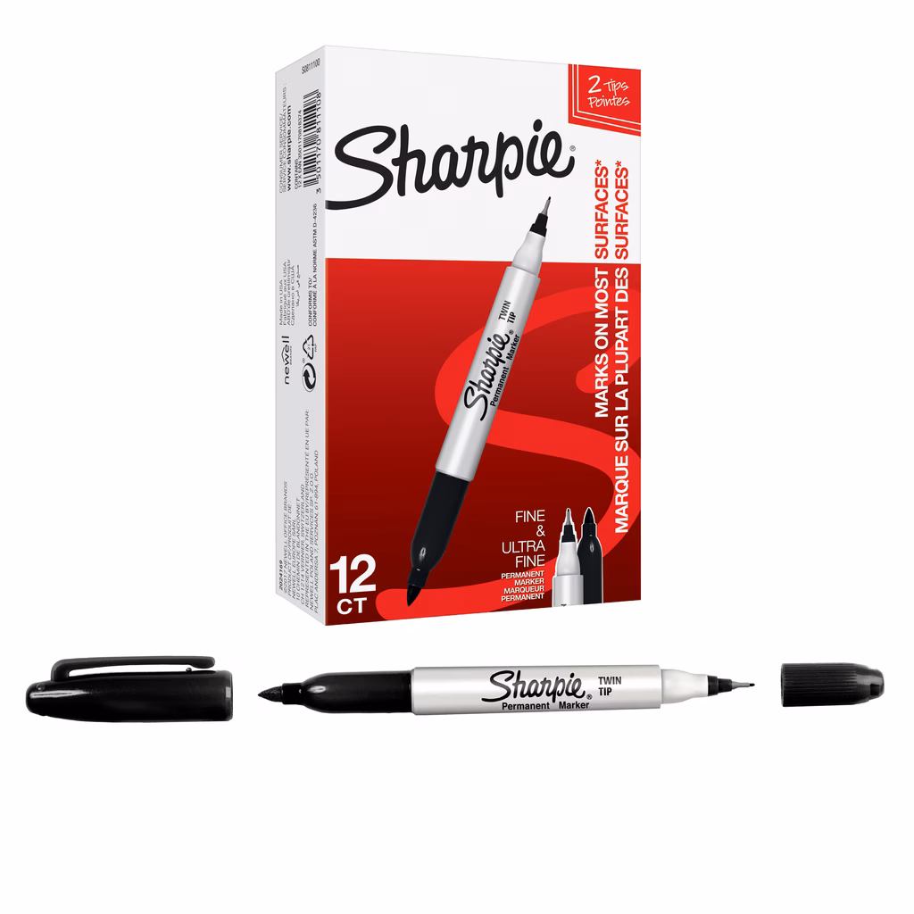 Pennarello permanent SHARPIE TWIN-TIP doppia punta conica fine e superfine colore nero