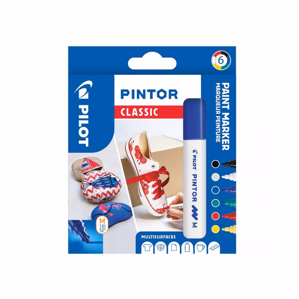 Pennarello PILOT PINTOR set punta media nero-bianco-rosso-blu-verde-giallo
