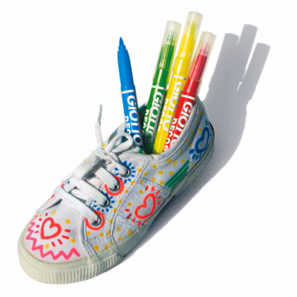 Pennarello colorato con tappo di sicurezza e cappuccio ventilato dall'inchiostro atossico e sicuro - dotato di una speciale punta ideale per decorare il tessuto - pennino bloccato - i colori sono facilmente lavabili dalle mani ma hanno una resa permanente sul tessuto e resistono a lavaggi in lavatrice fino a 40° - per fissare meglio il colore si consiglia di passare il ferro da stiro tiepido sul decoro