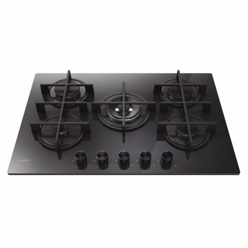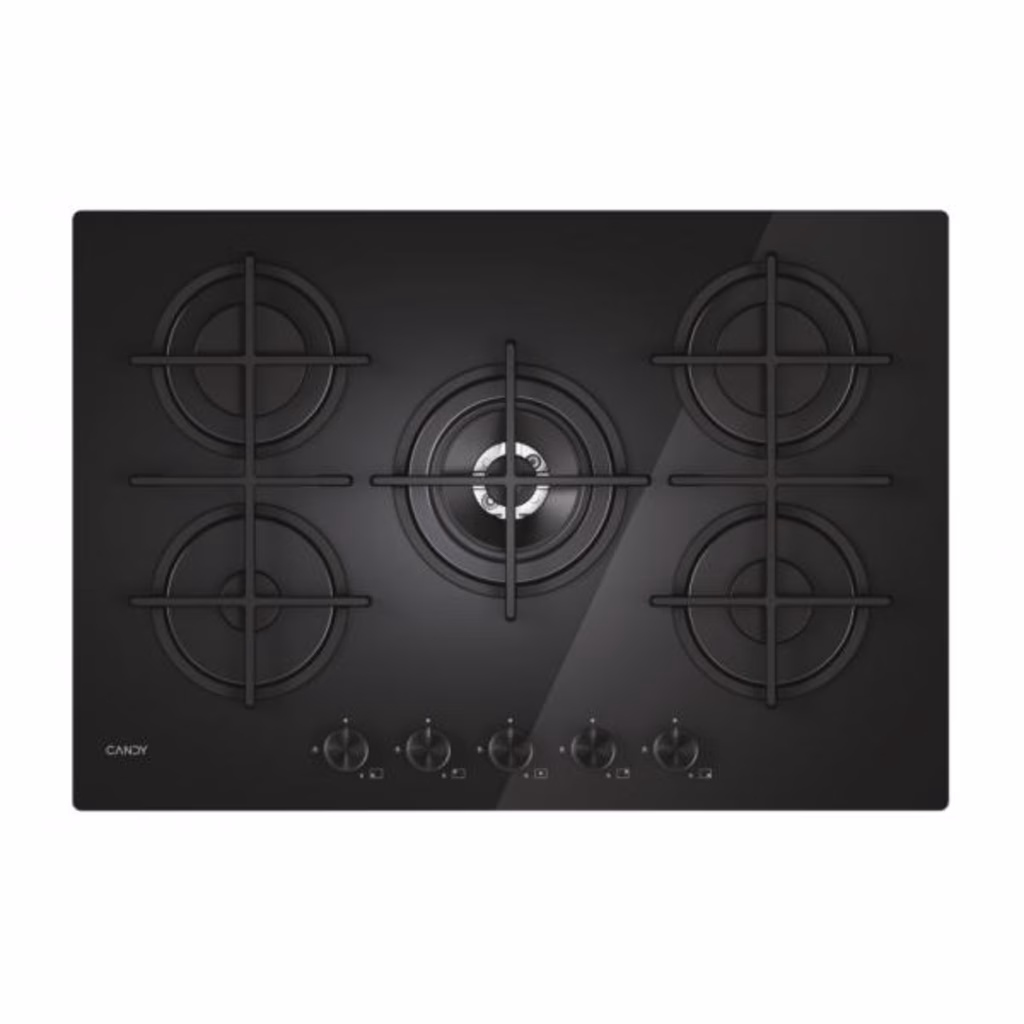 Candy CVG74WTB, Nero, Da incasso, 75 cm, Gas, Acciaio inox, 5 Fornello(i)Candy CVG74WTB. Colore del prodotto: Nero, Posizionamento dell'apparecchio: Da incasso, Dimensione della larghezza del piano cottura: 75 cm. Tipo di controllo: Manopola, Posizione di controllo: Front / Top front. Tensione di ingresso AC: 220-240 V. Applicazioni per il controllo supportate: hOn. Larghezza: 750 mm, Profondità: 510 mm, Altezza: 50 mm
