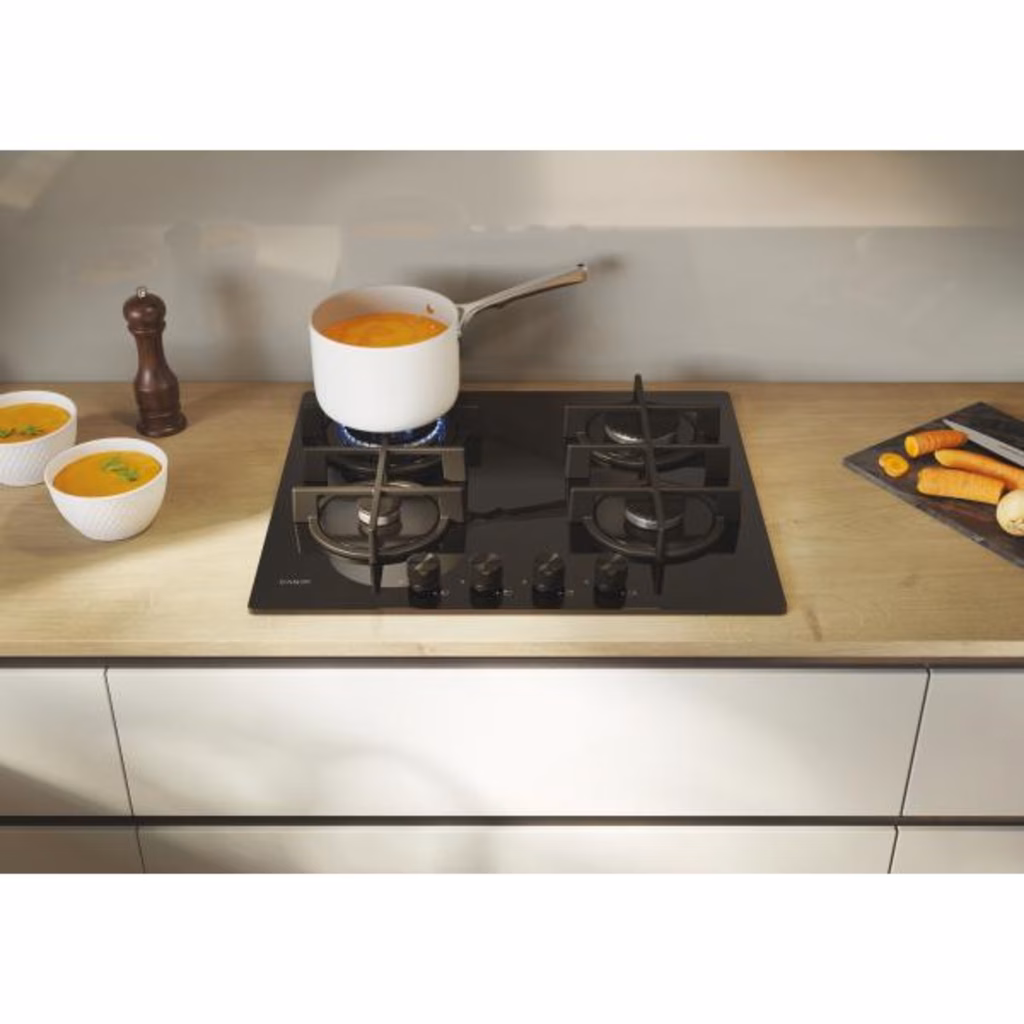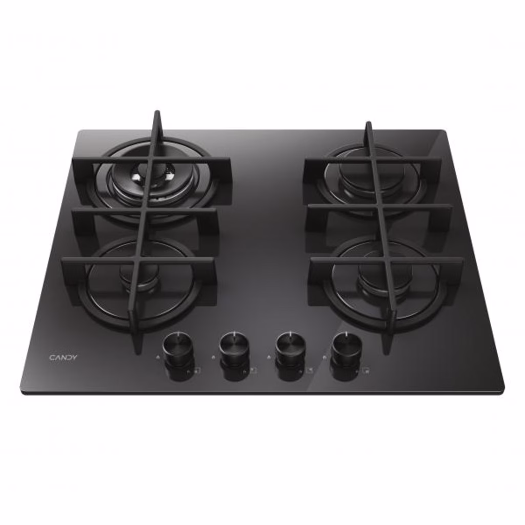 Piano Cottura Gas in vetro 60cm, 4 bruciatori, NeroCandy Moderna CVG6BR4WTB. Colore del prodotto: Nero, Posizionamento dell'apparecchio: Da incasso, Dimensione della larghezza del piano cottura: 60 cm. Tipo di controllo: Manopola, Posizione di controllo: Frontale. Potenza aggregata (gas): 9450 W. Larghezza: 595 mm, Profondità: 510 mm, Altezza: 8 mm. Larghezza imballo: 896 mm, Profondità imballo: 64 mm, Altezza imballo: 676 mm