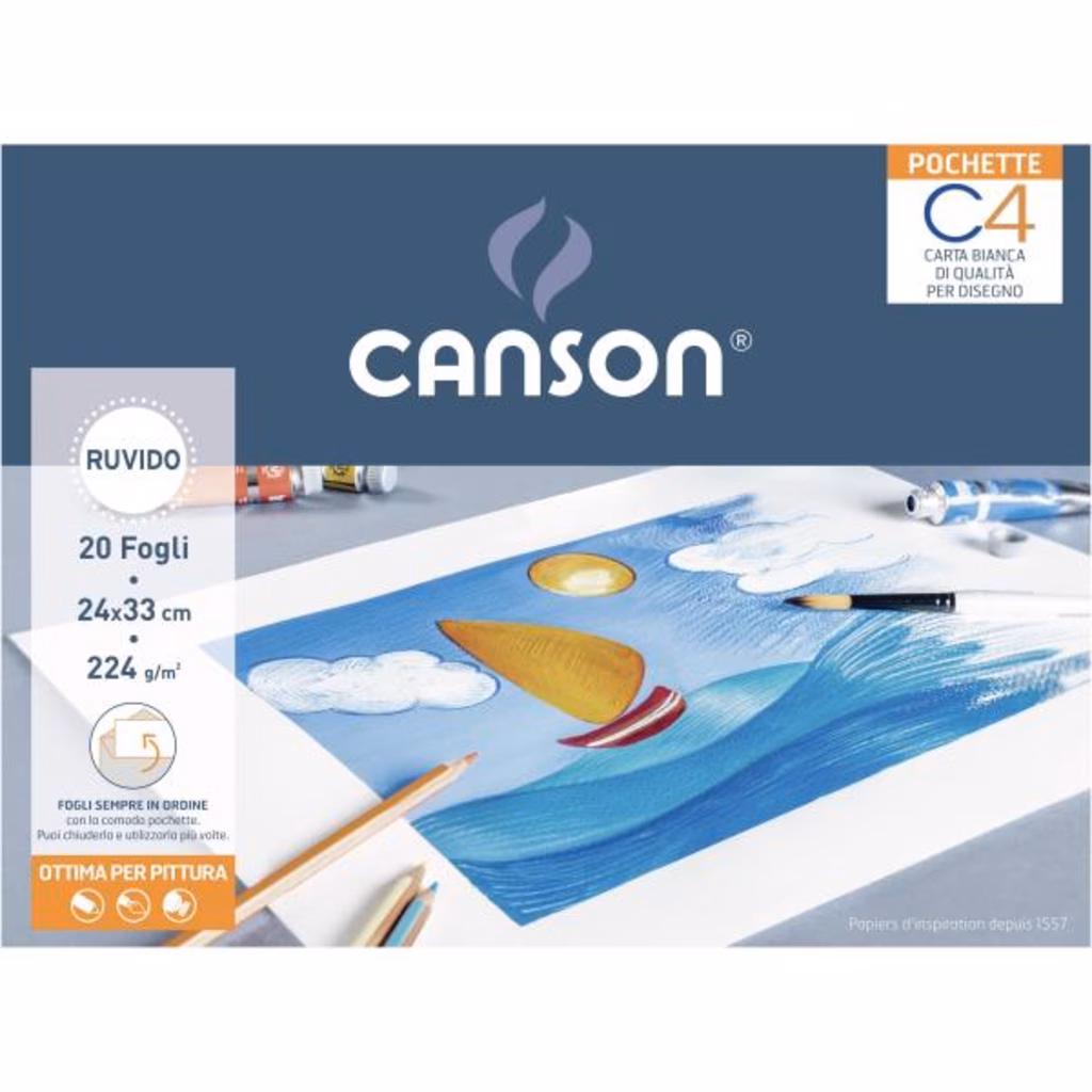 La carta da disegno Canson è ora disponibile nel nuovo formato pochette, ideale per conservare i lavori ed indispensabile per la scuola. La pratica confezione permette infatti di tenere sempre i fogli ordine e di essere utilizzato più volte. Carta liscia per disegno tecnico, grafite e china. Carta ruvida per grafite, matite acquarellabili, acquerello e tempera.