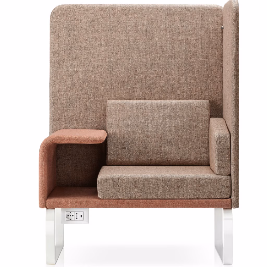 CUBIX è una poltrona dalla forte personalità che crea uno spazio raccolto e discreto, consentendo di isolarsi dal contesto circostante grazie ai suoi pannelli fonoassorbenti. Il design semplice rende tuttavia Cubix funzionale, rispondendo al bisogno di riservatezza e al contempo di comodità, con una tavoletta imbottita e un vano porta oggetti. La struttura in tubo dacciaio e il sedile in spugna ad alto spessore rendono Cubix estremamente resistente. STRUTTURA: in tubo dacciaio Ø20 spessore 2, imbottito di poliuretano schiumato a freddo e con pannelli fonoisolanti, rivestito in tessuto. SCHIENALE: contiene un pannello di fibra riciclata in tessile tecnico di poliestere a densità crescente lungo lo spessore, dalle elevate prestazioni termiche e acustiche. Di durata illimitata, atossico, ecologico. Completo di cuscino in spugna rivestito. PANNELLO FONOISOLANTE: in fibra riciclata in tessile tecnico di poliestere a densità crescente, sp. 25 mm. SEDILE: Cuscino in spugna alto spessore (55 mm) rivestito in tessuto. BASE: in trafilato dacciaio 45x6, finitura cromata (15m) o verniciata a polveri. TAVOLINO: Pannello in tubo dacciaio Ø20 spessore 2, imbottito di poliuretano schiumato a freddo, rivestito in tessuto. RIVESTIMENTI: richiedibile in tutti i tessuti della categoria D, richiedere cartelle complete e scegliere abbinamenti colori possibili tra schienali, tavolino e cuscini/sedile. OPZIONALE: scatola elettrica con presa 2P+T 16A universale e alimentatore USB A+C 5V 3A. CONSEGNATO GIA' ASSEMBLATO