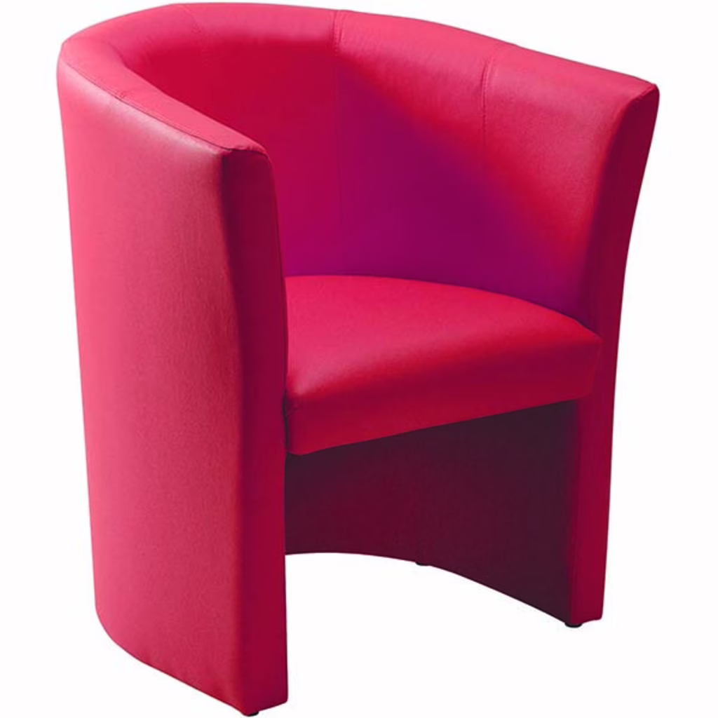 Poltrona con imbottitura in resina poliuretanica densità 30 kg/mc. Dimensioni LxpxH cm 70x62x78. Rivestimento in ecopelle colore rosso