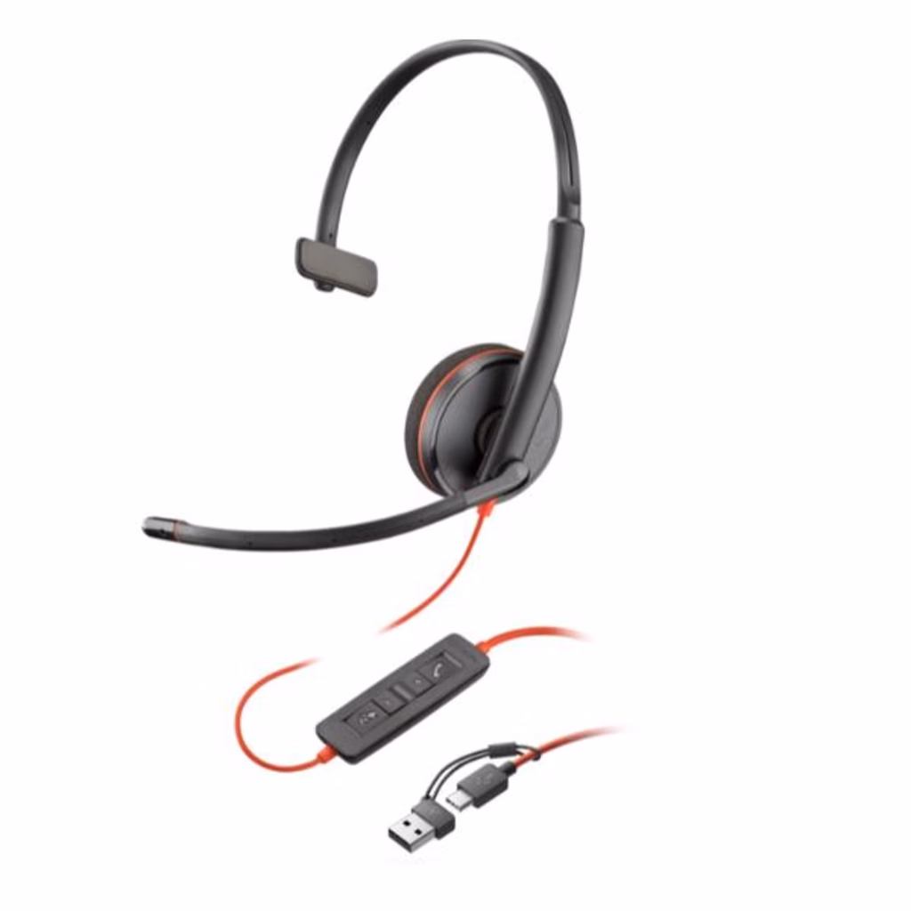 La Poly Blackwire 3210 è una cuffia monoaurale affidabile e dal design intuitivo, pensata per professionisti che necessitano di una soluzione audio semplice, comoda e versatile, sia in ufficio che in mobilità. Parte della gamma Blackwire 3200, è completamente plug-and-play e si collega al PC tramite USB-C, con incluso un adattatore USB-A per la massima compatibilità.