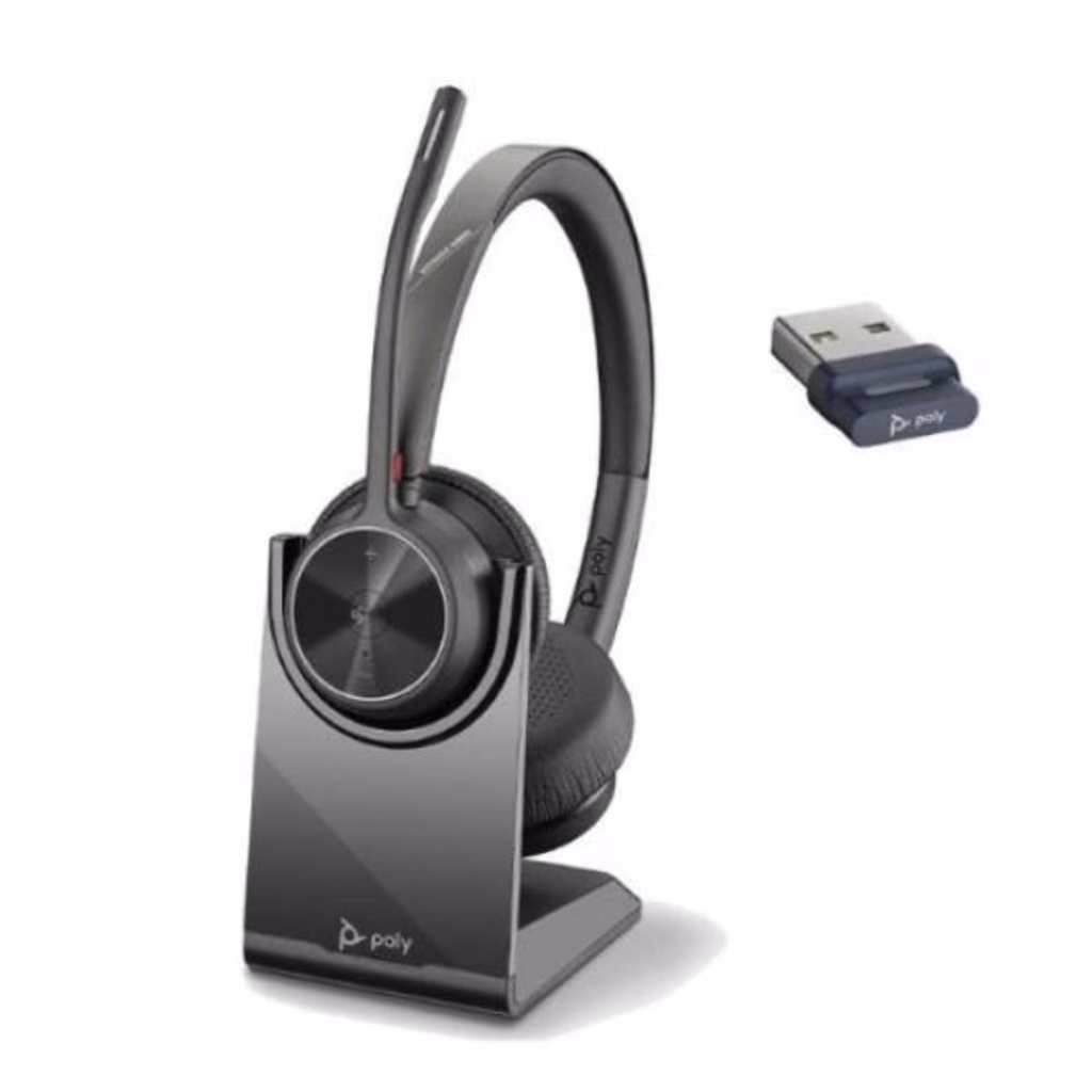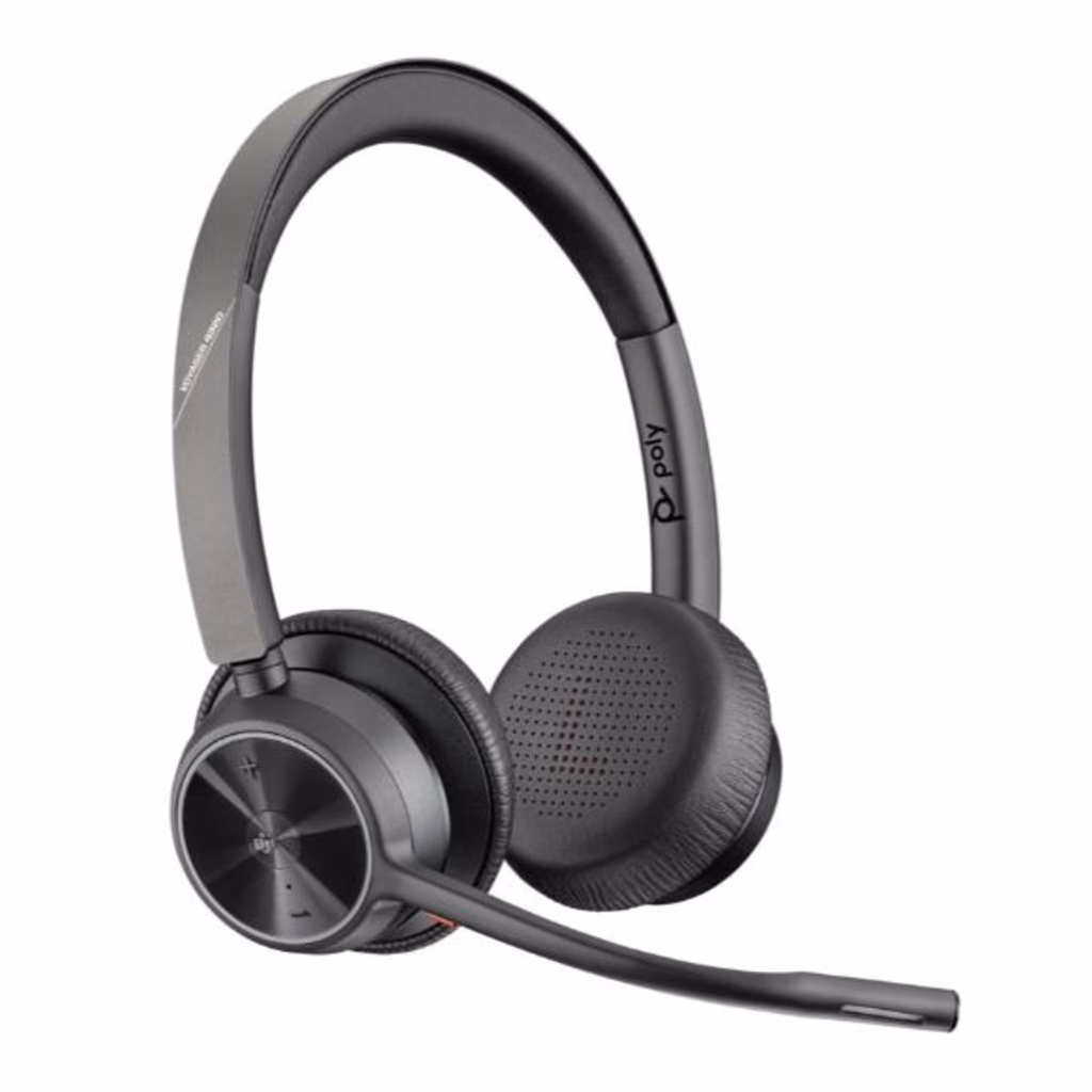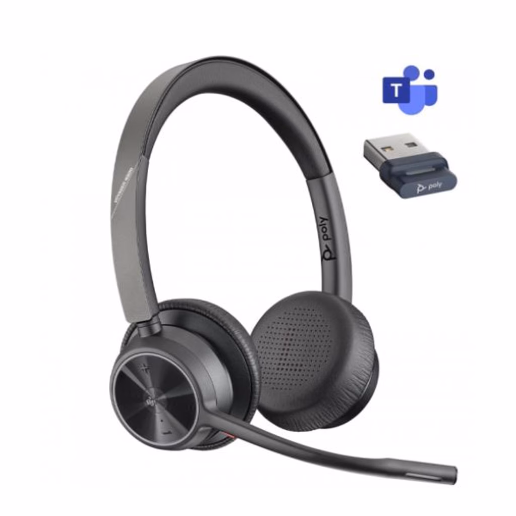Goditi la libertà alla tua scrivania con le convenienti cuffie stereo senza fili Voyager 4320. Ti offrono tutto ciò di cui hai bisogno per rimanere connesso con tutti i tuoi dispositivi - sia a casa che in ufficio. Rimani produttivo in ogni momento con un comfort che dura tutto il giorno e con la tecnologia Acoustic Fence con doppio microfono che blocca il rumore di fondo. Collega l'unità a un computer tramite l'adattatore USB Bluetooth in dotazione e a un telefono cellulare tramite Bluetooth 5.2.