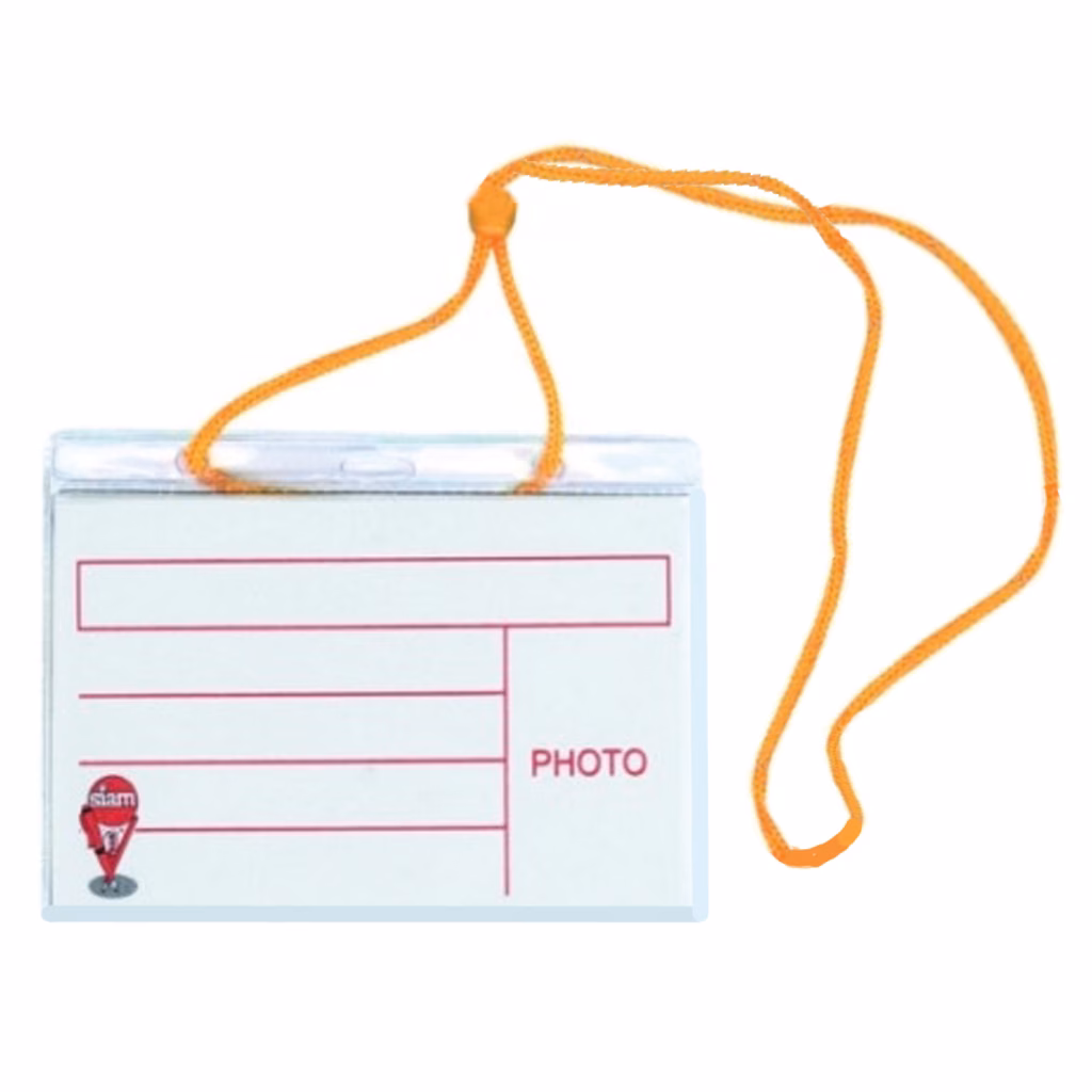 Portanome in PVC morbido trasparente - cartoncino incluso - completo di cordoncino in colori assortiti