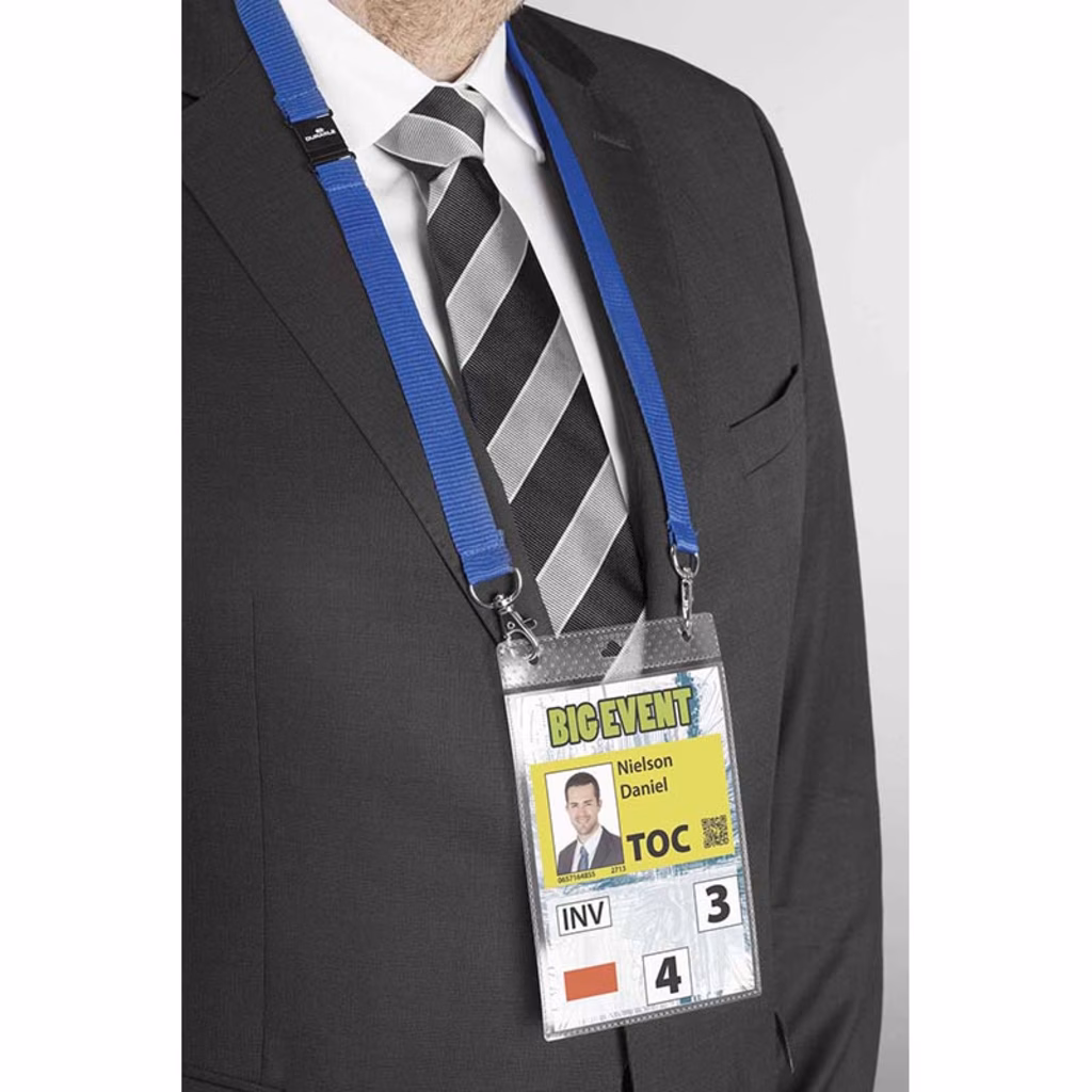 Portanome A6 per eventi con cordoncino e doppio moschettone DURABLE 8525-07 colore blu cm 10x15