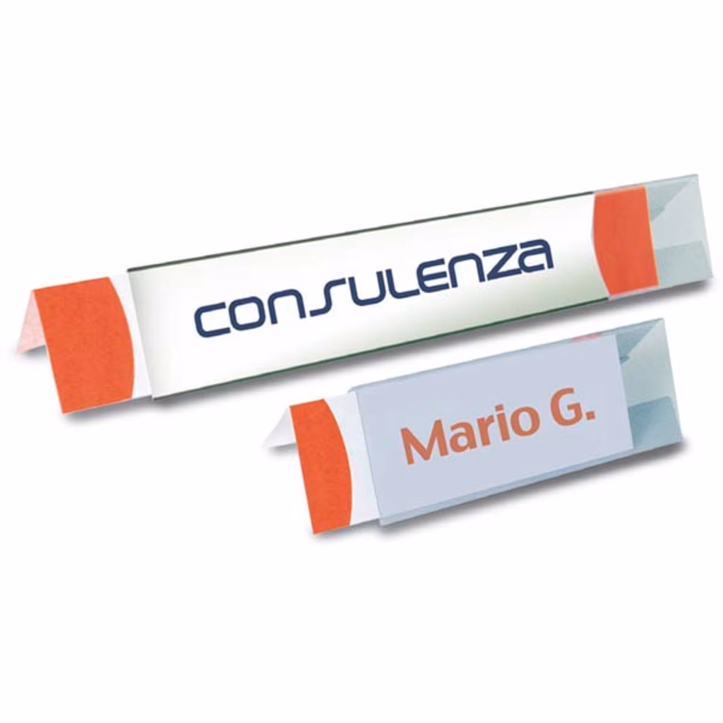 Portanome da tavolo per riunioni e congressi in PVC cristallo flessibile - spessore 30/100 - completo di cartoncino scrivibile