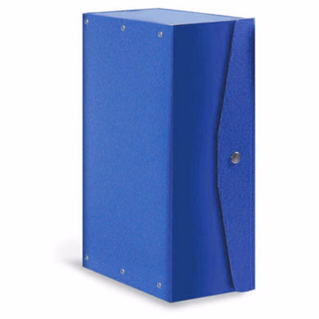 Scatola in fibrone con 3 bottoni in metallo - chiusura con bottone a pressione - verniciatura lucida - completa di etichetta adesiva - fornita stesa per il minimo ingombro