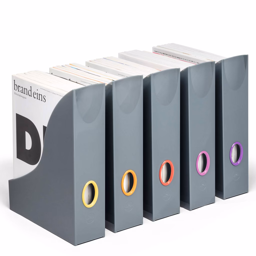 Set di 5 eleganti portariviste - Fori di presa di diversi colori per un facile orientamento e un accesso ottimale - Per riviste, cataloghi e brochure ecc. fino al formato A4