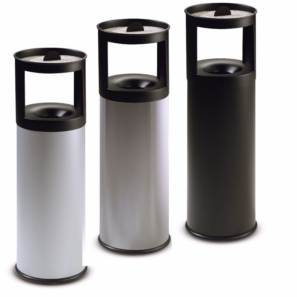 La doppia funzionalità lo rende un oggetto pratico in molte tipologie di ambienti - La struttura in metallo lo rende leggero, ma resistente agli urti - base in plastica anticorrosione protegge il pavimento dai graffi e ne facilita lo spostamento - La parte superiore funge da posacenere mentre la parte inferiore è atta per la raccolta di carta ed altri rifiuti - 1 Kg di sabbia compreso - Base Ø 25 cm, altezza 80 cm - Proposto nella finitura Inox satinato oppure verniciato