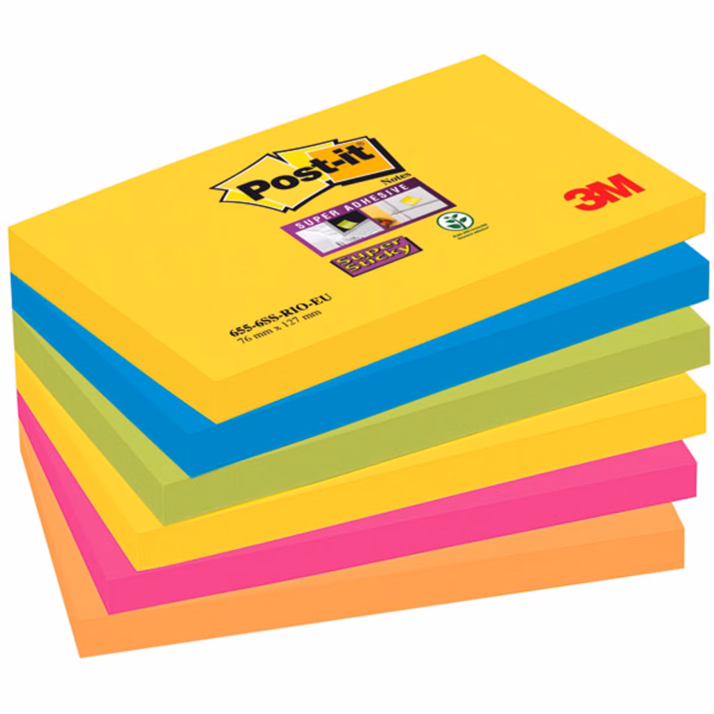 Post-it 3M 655-6ss-rio super sticky 76x127 ass.