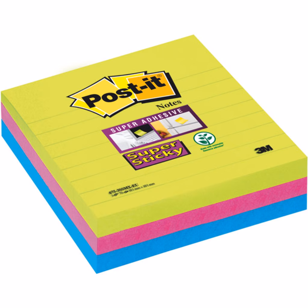 Foglietti Post-it® Super Sticky formato XL super adesivi e riposizionabili - a righe - confezione in colori assortiti - blocchetti da 70 fogli
