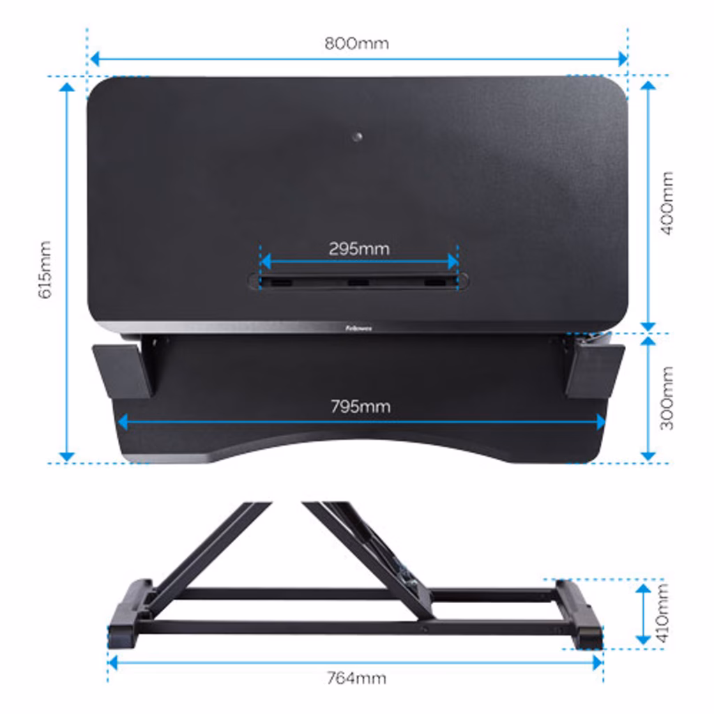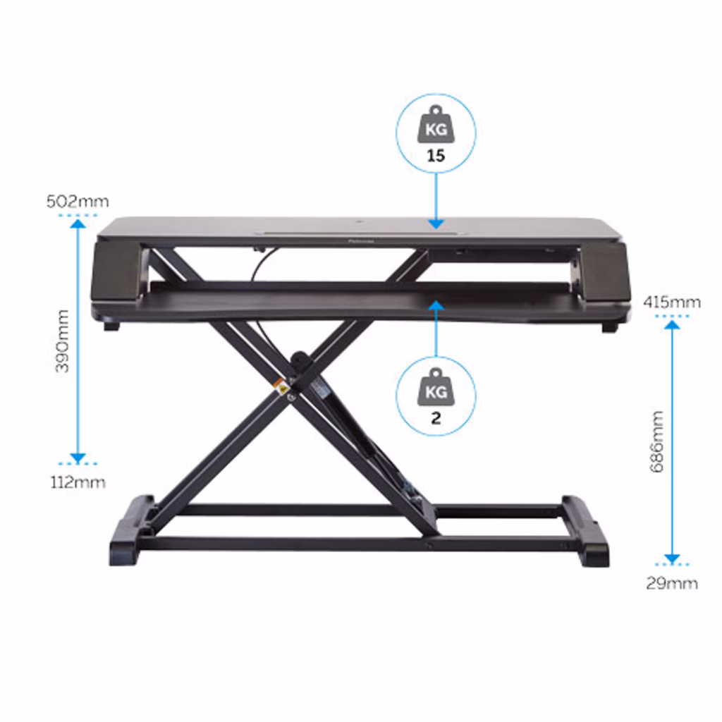 Trasforma la tua scrivania sedentaria in una scrivania dinamica ed aggiunge movimento alla tua giornata. Transizione facile e veloce dalla posizione seduta a quella in piedi grazie al meccanismo a molla a gas. Doppio piano di lavoro che permette varie possibilità di settaggio con spzio per due monitor ed un laptop. Spazio per tenere telefono o altri accessori tecnologici a portata di mano. Assemblaggio semplice, occorre solo montare il vassoio per la tastiera ed è pronto all'uso. Per monito peso massimo 15 kg. Piano di lavoro: dimensioni cm 80x40, altezza massima cm 50,2 Piano tastiera: dimensioni cm 79,5x30, altezza massima cm 41,5
