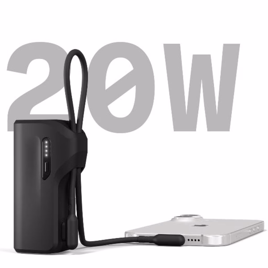 Goditi la potenza tascabile, progettata per seguirti ovunque. Con il perfetto equilibrio tra forma e funzionalità, ottieni la potenza di cui hai bisogno senza rinunciare allo stile.Questo mini Power Bank è dotato di un cavo in silicone ad angolo retto da 25 cm con un sistema di protezione dalla trazione avanzato e un organizer integrato, che mantiene tutto ciò di cui hai bisogno per una ricarica rapida ben riposto in tasca.