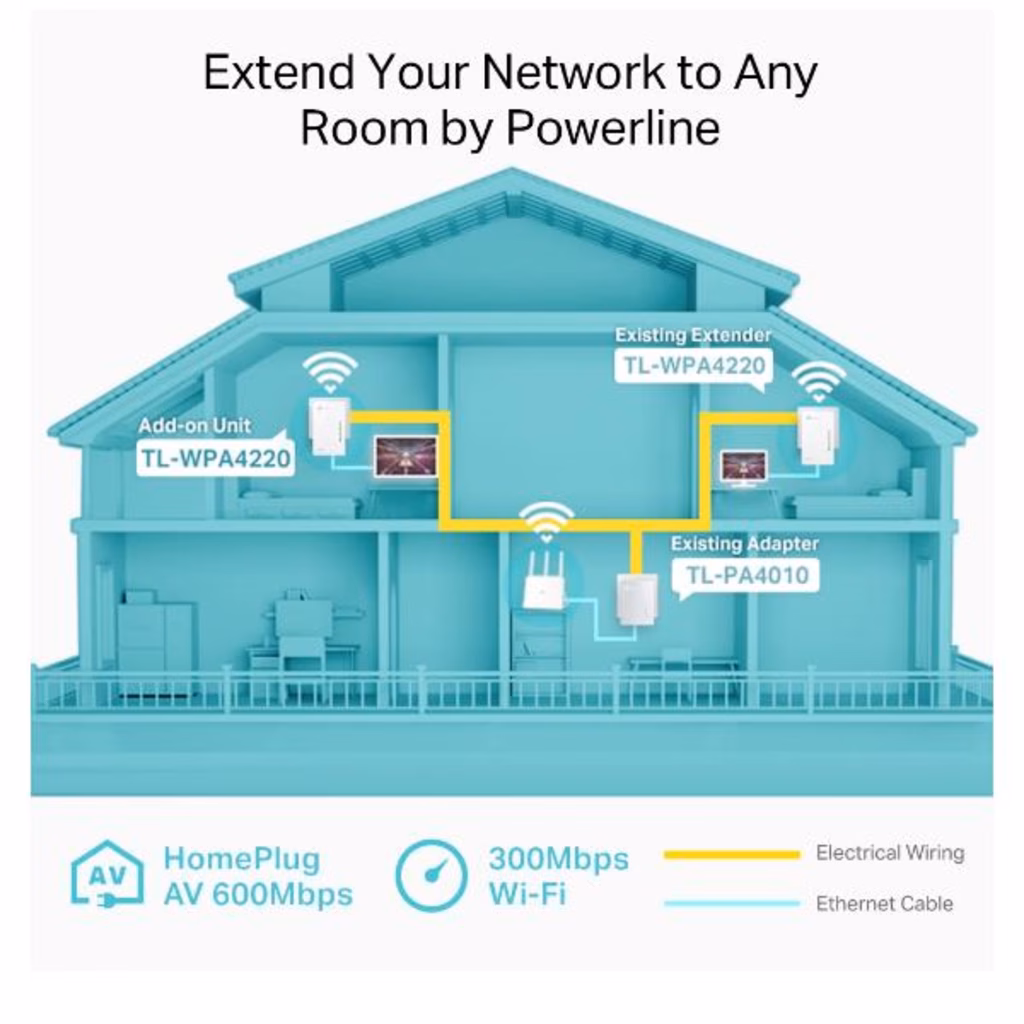 • Velocità di trasferimento dati Powerline fino a 600Mbps ideale per streaming HD e gaming online senza lag