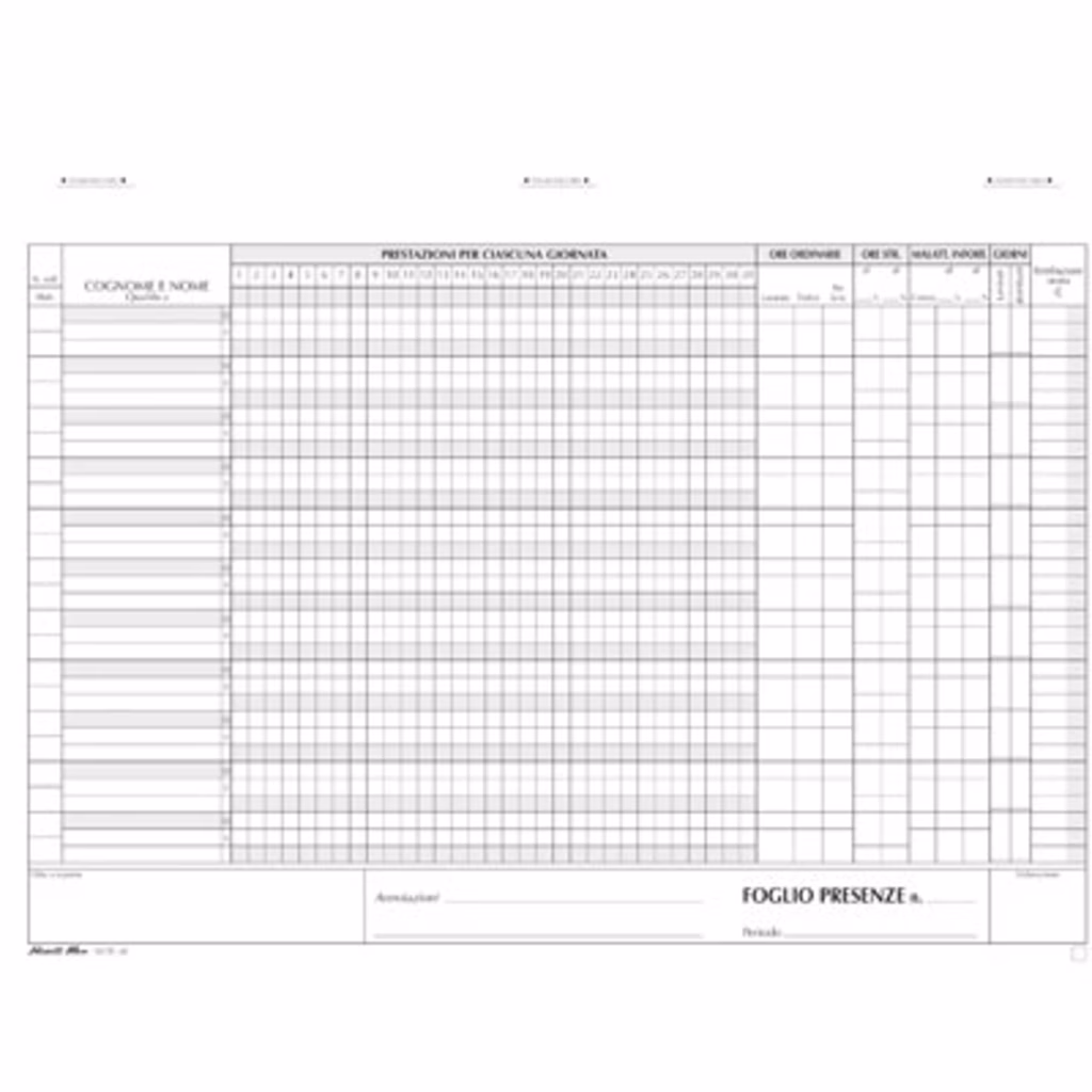 Presenze mensili con vidimazione - blocco di 50x2 fogli in carta chimica (autoricalcante)