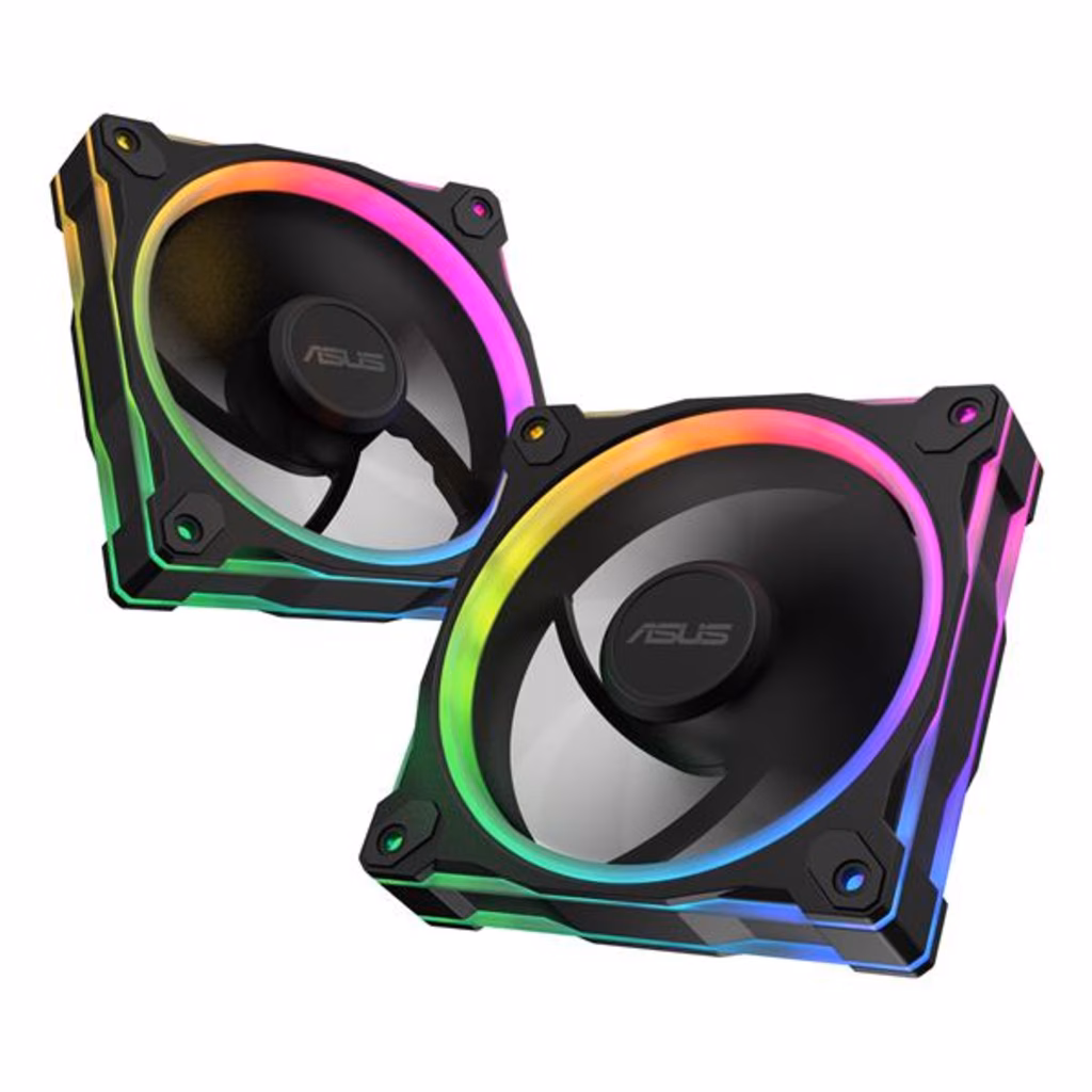 La ventola ASUS Prime MR120 ARGB con illuminazione su due lati e spessore di 28 mm offre prestazioni di raffreddamento ideali.