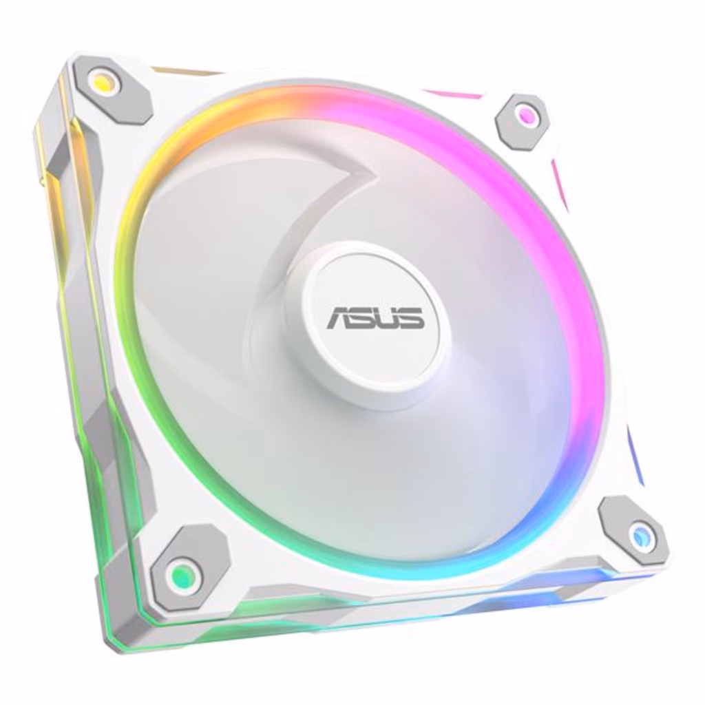 La ventola ASUS Prime MR120 ARGB con illuminazione su due lati e spessore di 28 mm offre prestazioni di raffreddamento ideali.