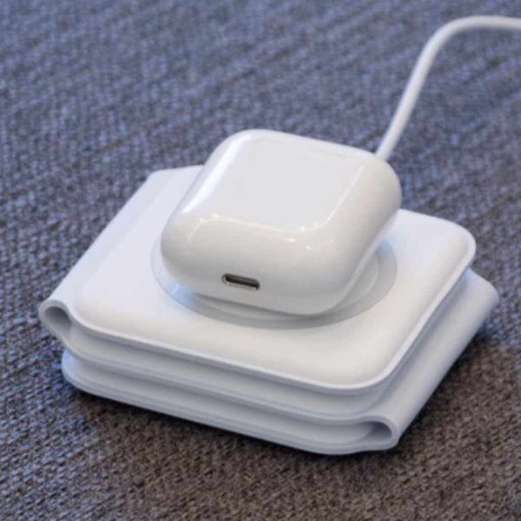 Fold è un tappetino di ricarica rapido triplo adotta il design di ricarica di più dispositivi, inoltre la tecnologia wireless può ricaricare fino a 15WRicarica rapida wirelessRicarica Wireless il tuo smartphone, Apple Watch ed AirPods più velocemente e nello stesso istante con questa base di ricarica 3 i n 1. Il tappetino include un modulo di ricarica wireless magnetica da 15 W per smartphone