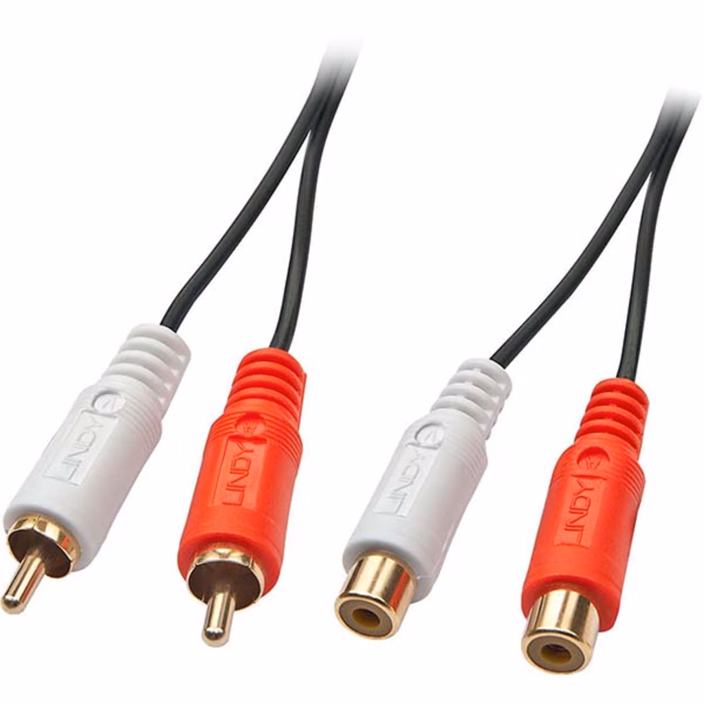 Connettori placcati oro 2x RCA Maschio a 2x RCA Femmina Trasmissione segnale audio in formato Stereo Disponibile in diverse metrature, 2m, 5m e 10m Cavo in PVC con conduttori schermati 2x AWG28 / 2x 0,080mm²